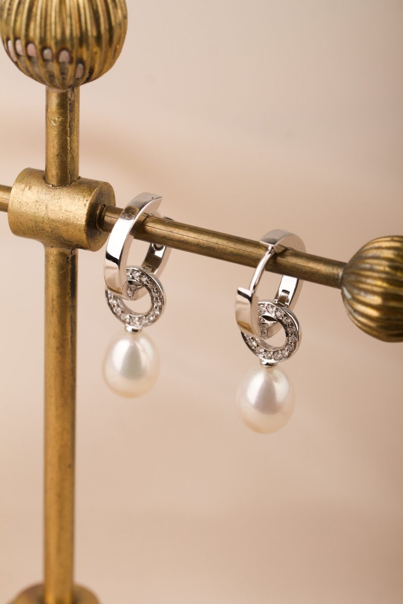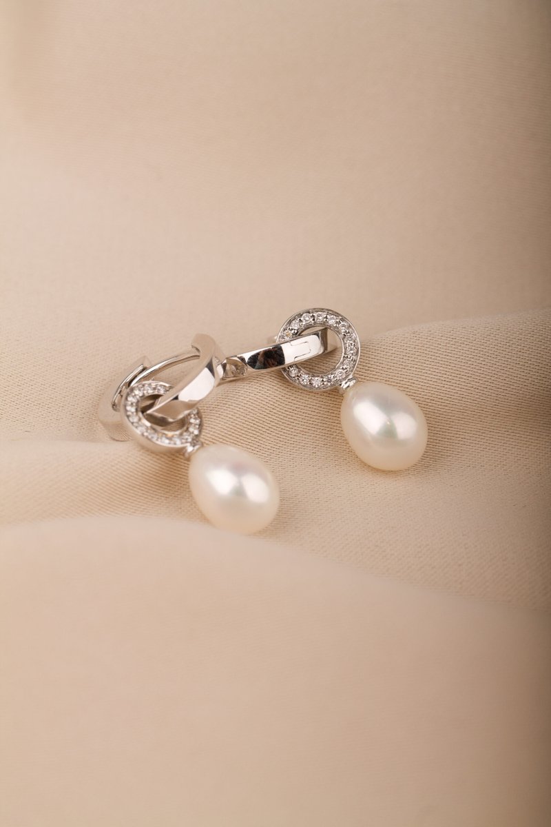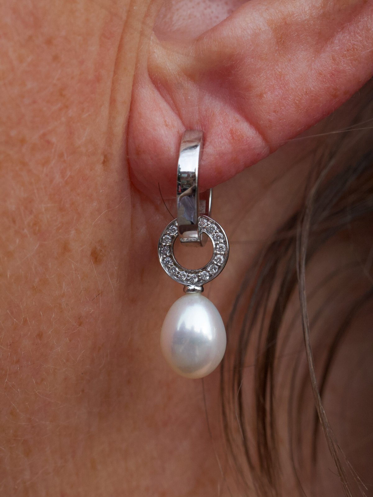 18K vitguld, 32 x 0,005 ct briljantlslipade diamanter, odlade sötvattenspärlor ca. 7,1 x 9 mm