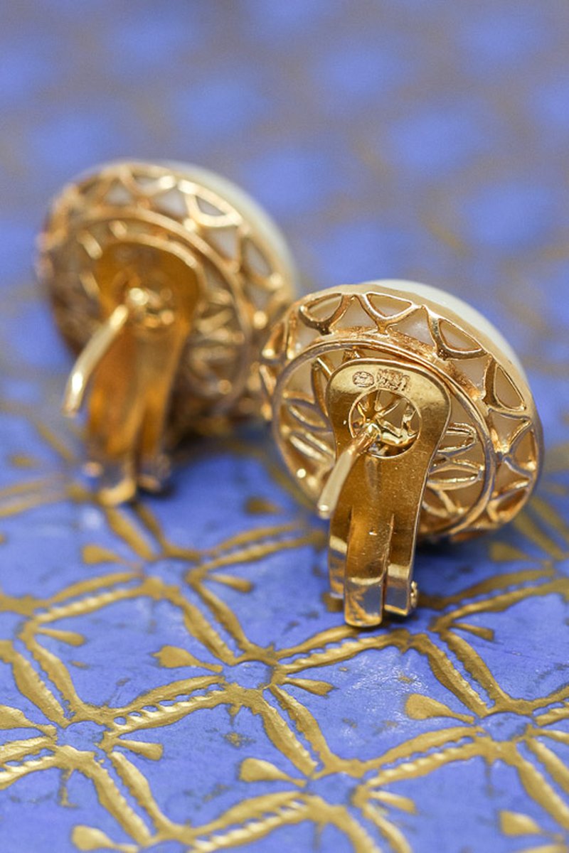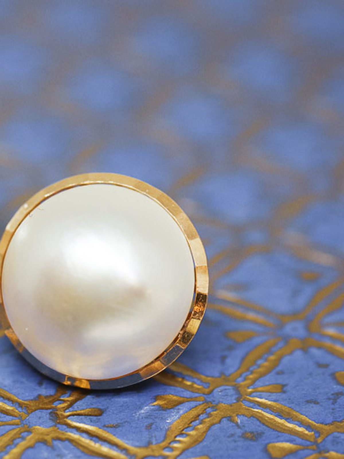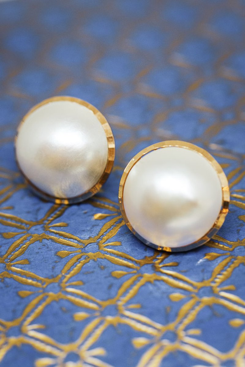 Lyxiga guldörhängen med välarbetad baksida och mabepärlor om 14,6mm. Sitter snyggt och bekvämt på örat tack vare det ordentliga låset. Tippar ej framåt.