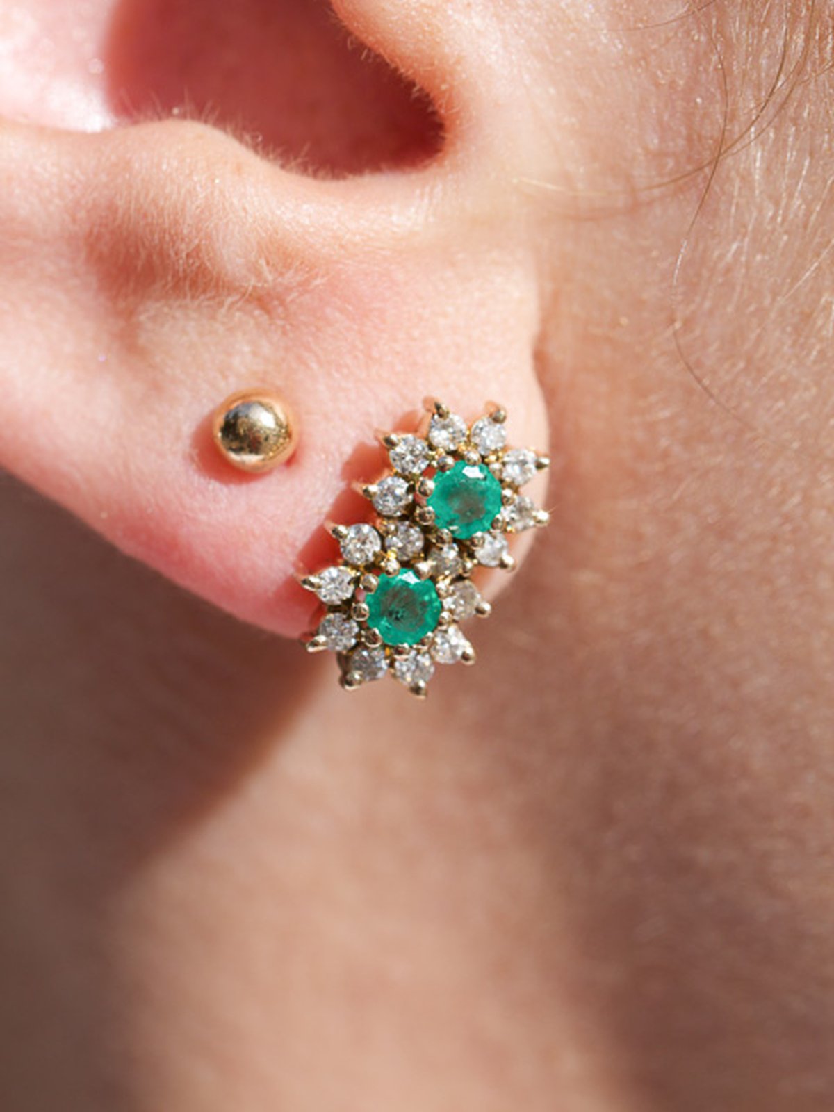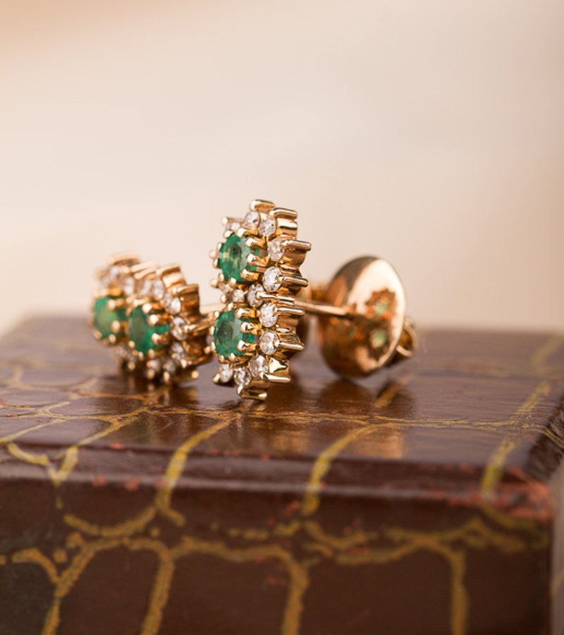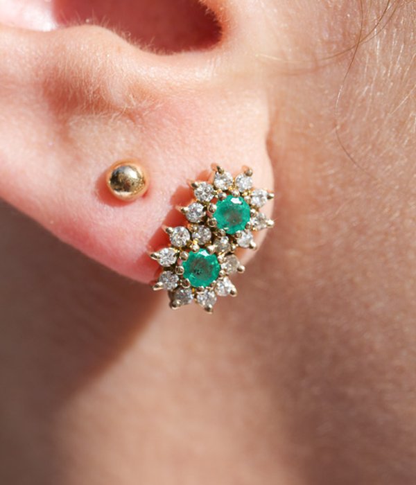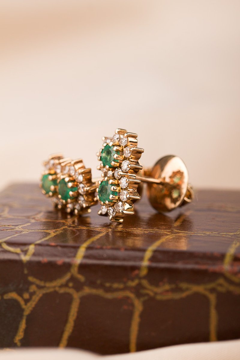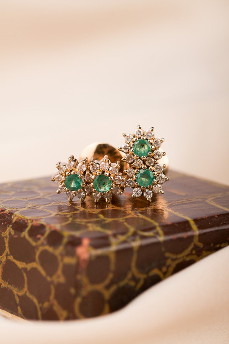 Unika örhängen med smaragder i centrum.