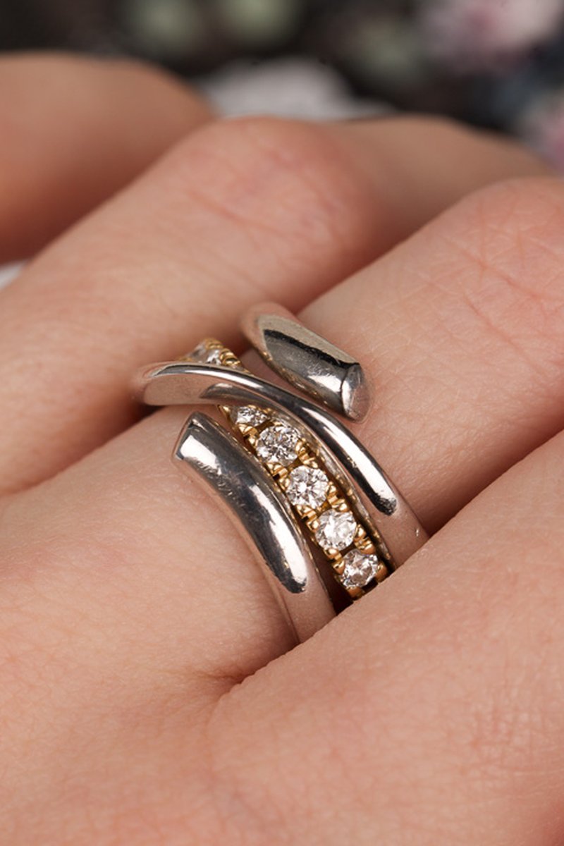 Pre Loved Magic-ring från Georg Jensen. Går att bära ensam eller med en mellanring som vi demonstrerar på sista bilden. Design Regitze Overgaard