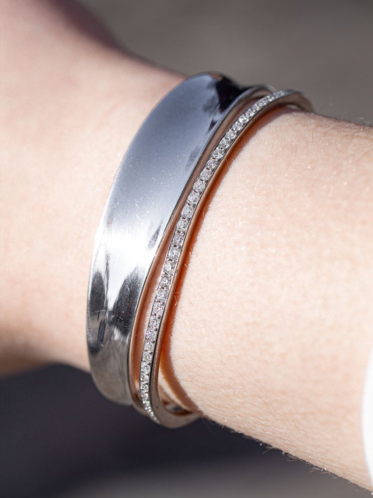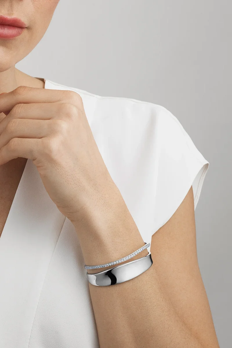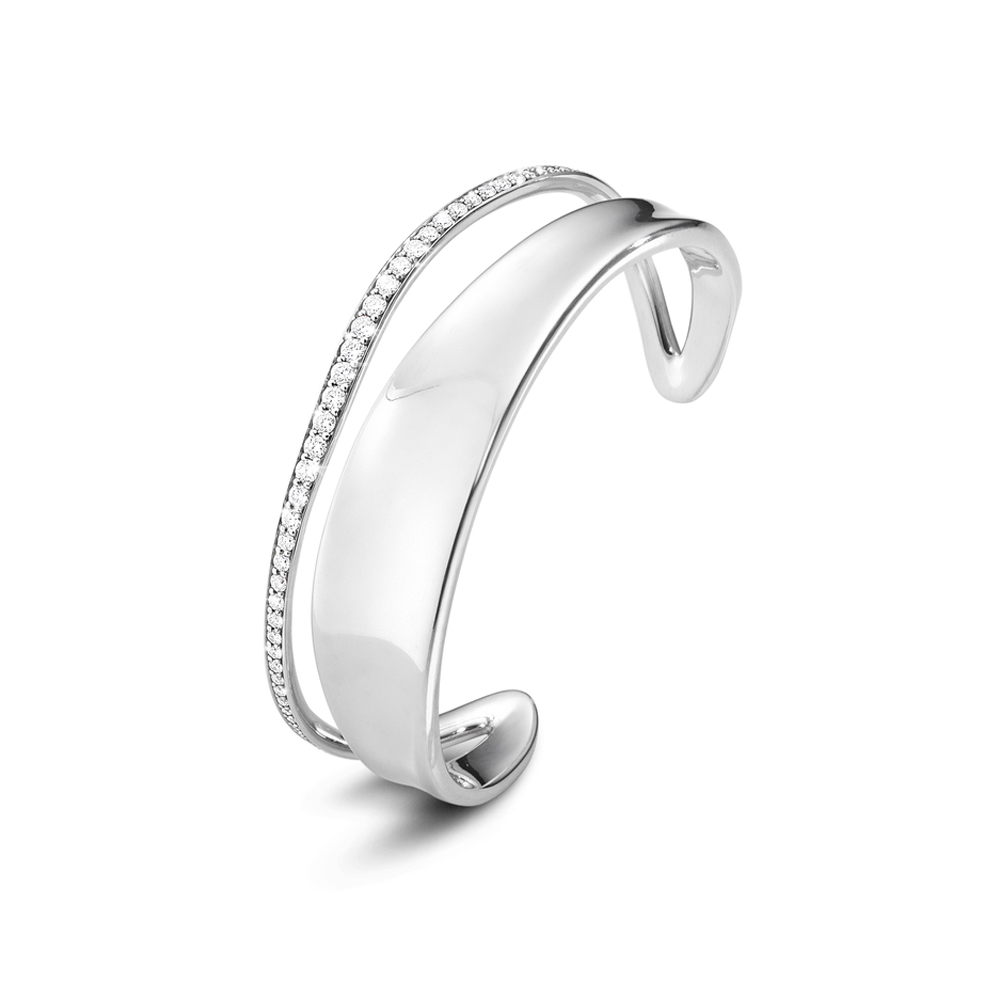 Lyxigt armband från Georg Jensen med totalt 1,03ct briljantslipade diamanter i storlek M. Armringen kommer från Vivianna Torun Bülow-Hübes kollektion 'Marcia' som är en symbol för kärlek och vänskap. Kollektionens flytande former förmedlar med sin hypnotiserande enkelhet en evig känsla – en förförisk symbol för kärlekens oändliga styrka.