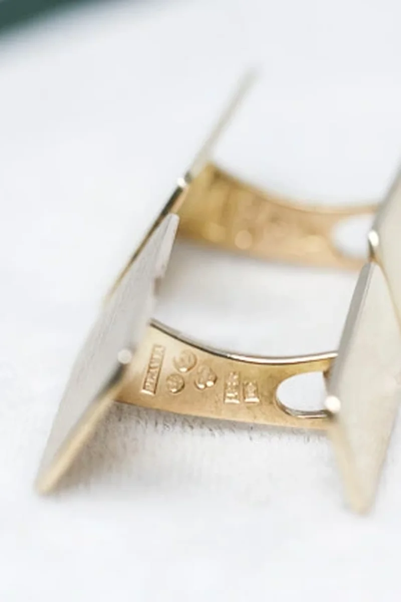 Manschettknappar i absolut nyskick, tillverkade i Skellefteå år 1952 av omtyckta Flavia. Endast rengjord hos oss, ej polerad då vi ville behålla smycket i absolut originalskick.