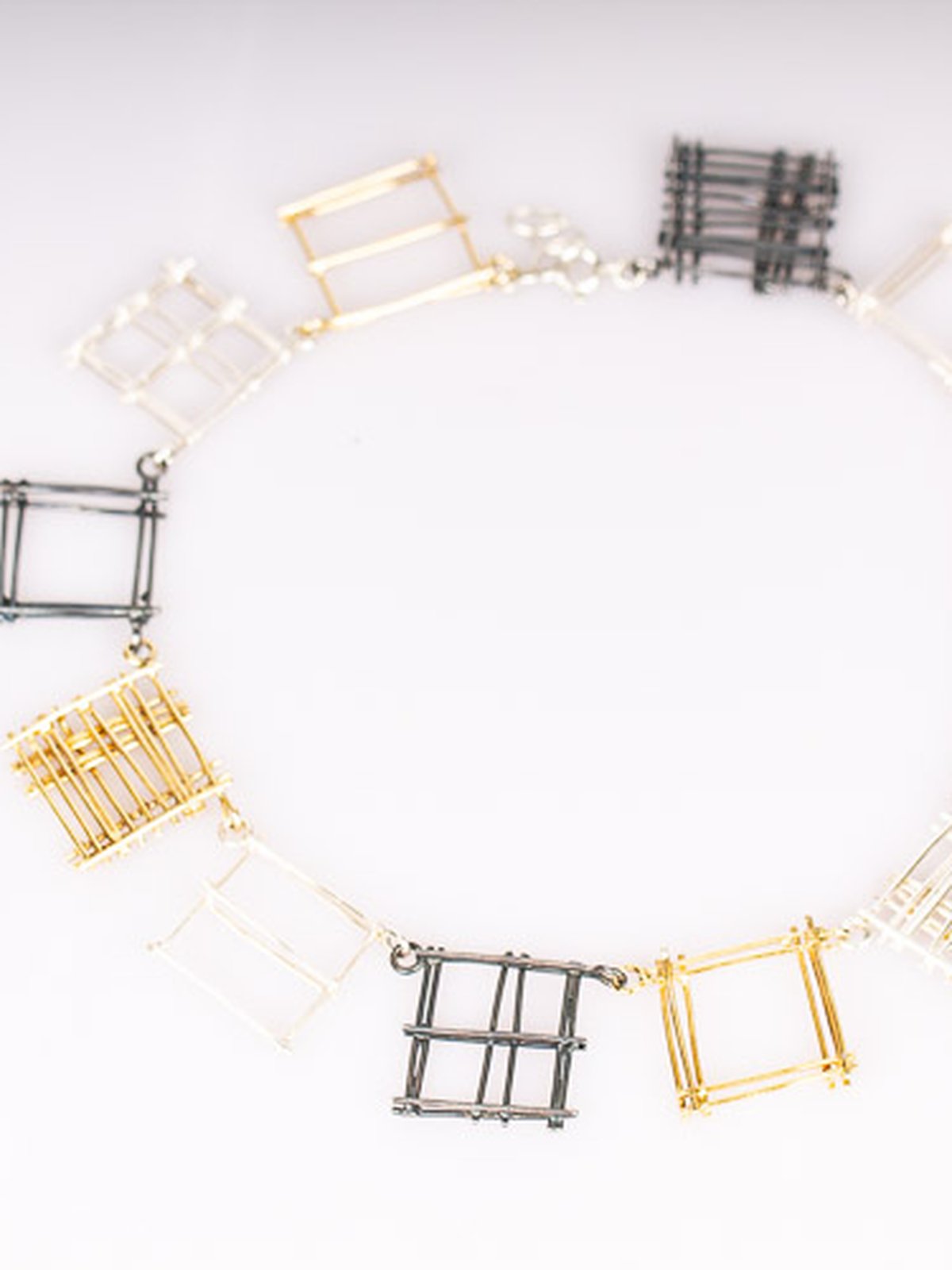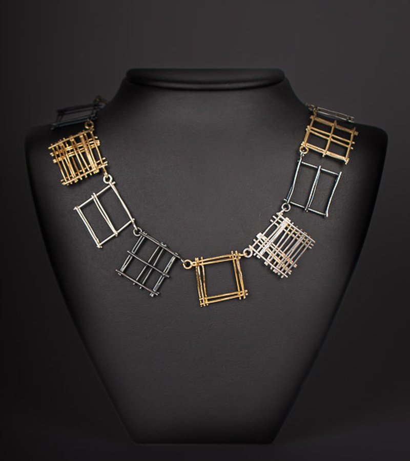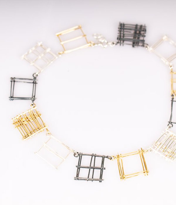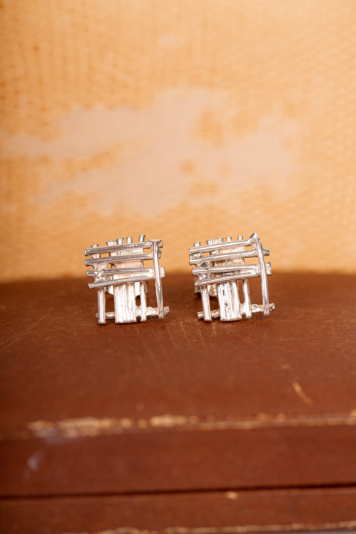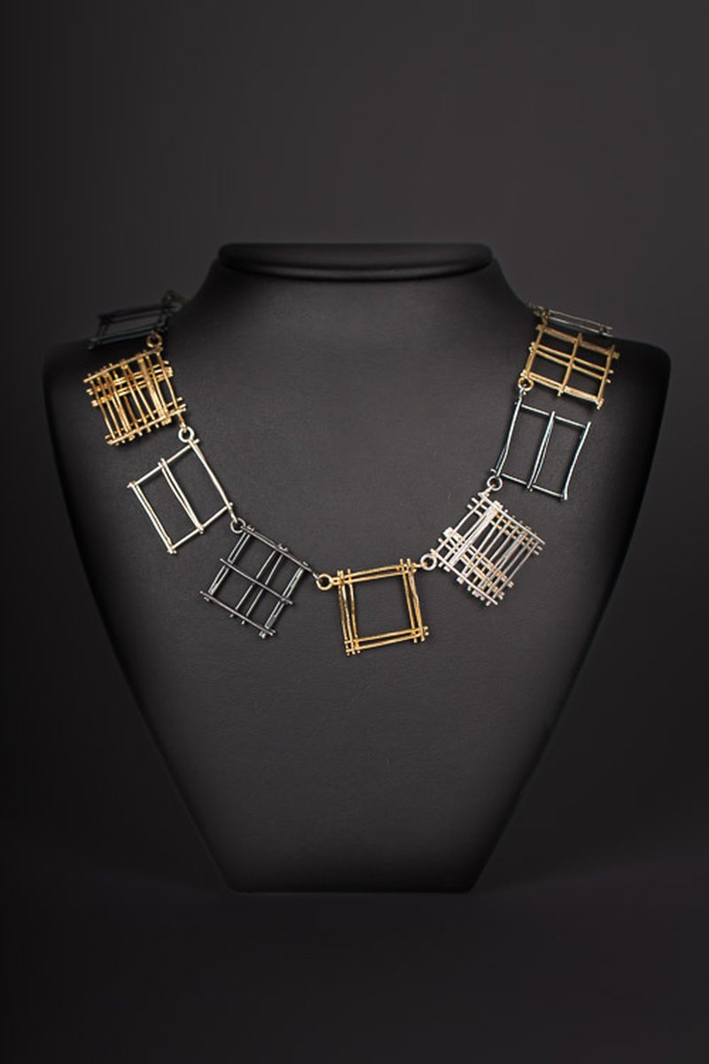 Spektakulärt silvercollier i olika nyanser säljes tillsammans med mindre matchande örhängen.