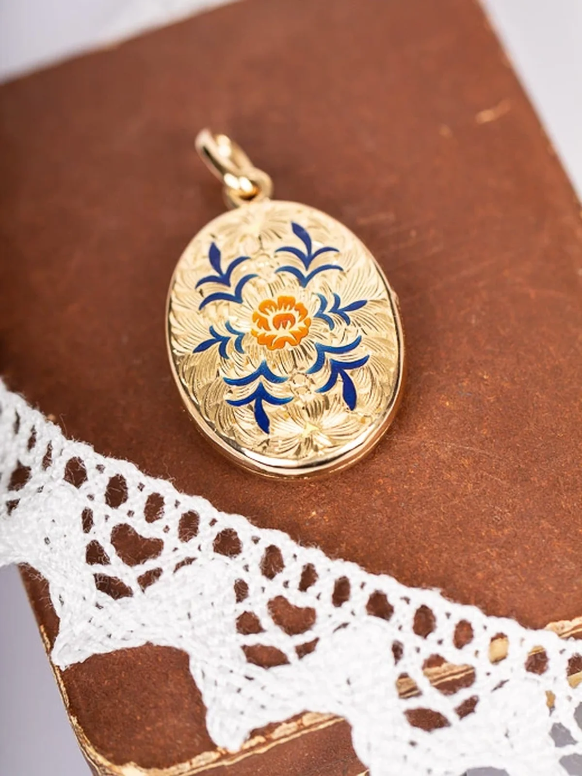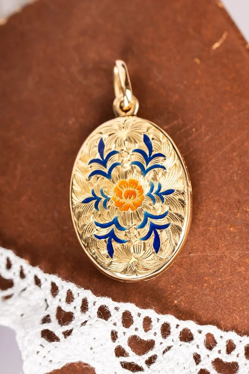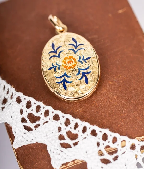 Mycket vacker medaljong i oklanderligt skick. Vacker att hänga i både en normallång och längre kedja.