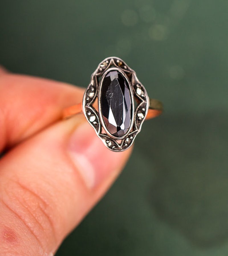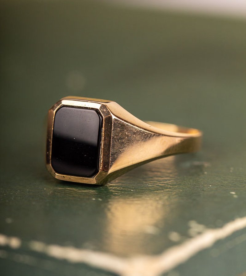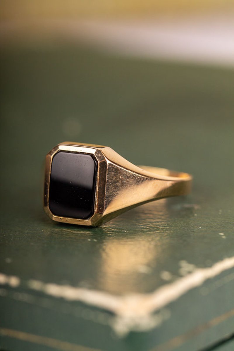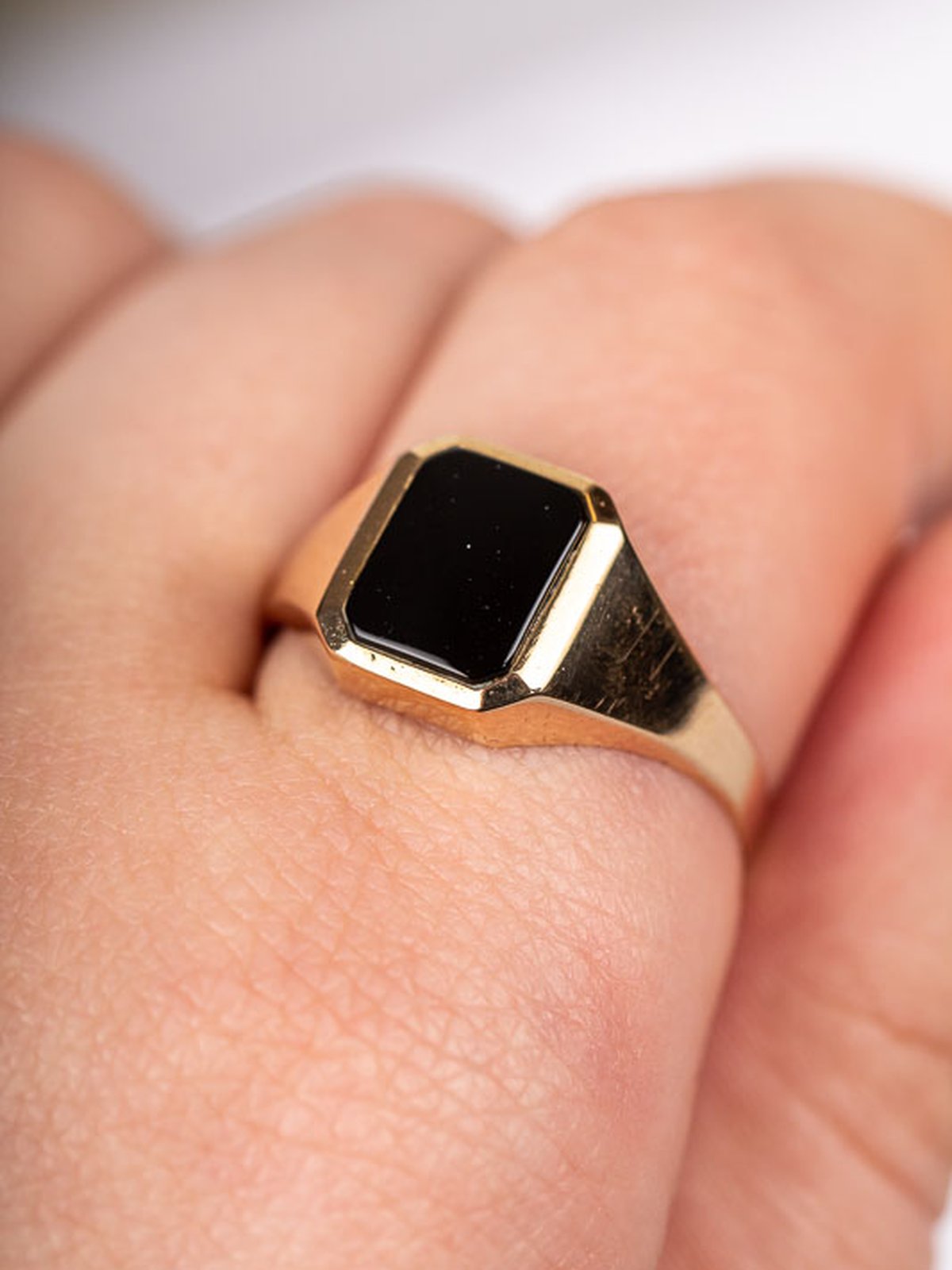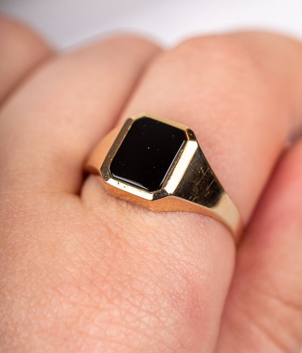 Klassisk klackring med svart onyx. Bör ej storleksändras.