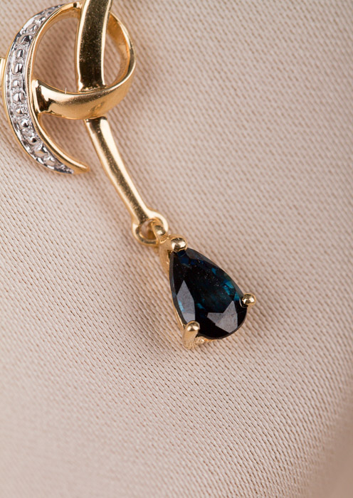 18k guld, droppslipad safir 4 x 6,2 mm & 0,005 ct 8/8-slipad diamant