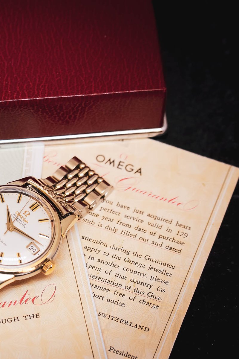 År 1961 köptes denna fantastiska Omega i vår butik som på den tiden hette Burmans Ur . Klockan kommer med originallänk, låda, certifikat, chronometer-certifikat och kvitto. Skicket på klockan är otroligt med tanke på åldern. Under 2022 har denna skönhet varit hos Omega i Schweiz för en genomgående service.