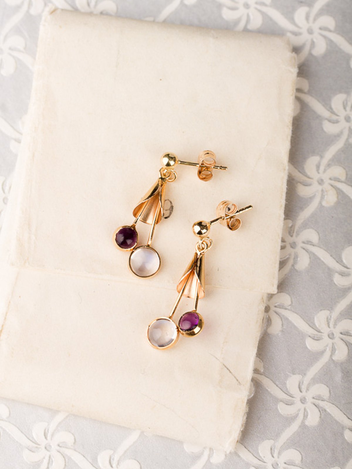 18K guld, Amestister 3,7 mm, månstenar 5 mm