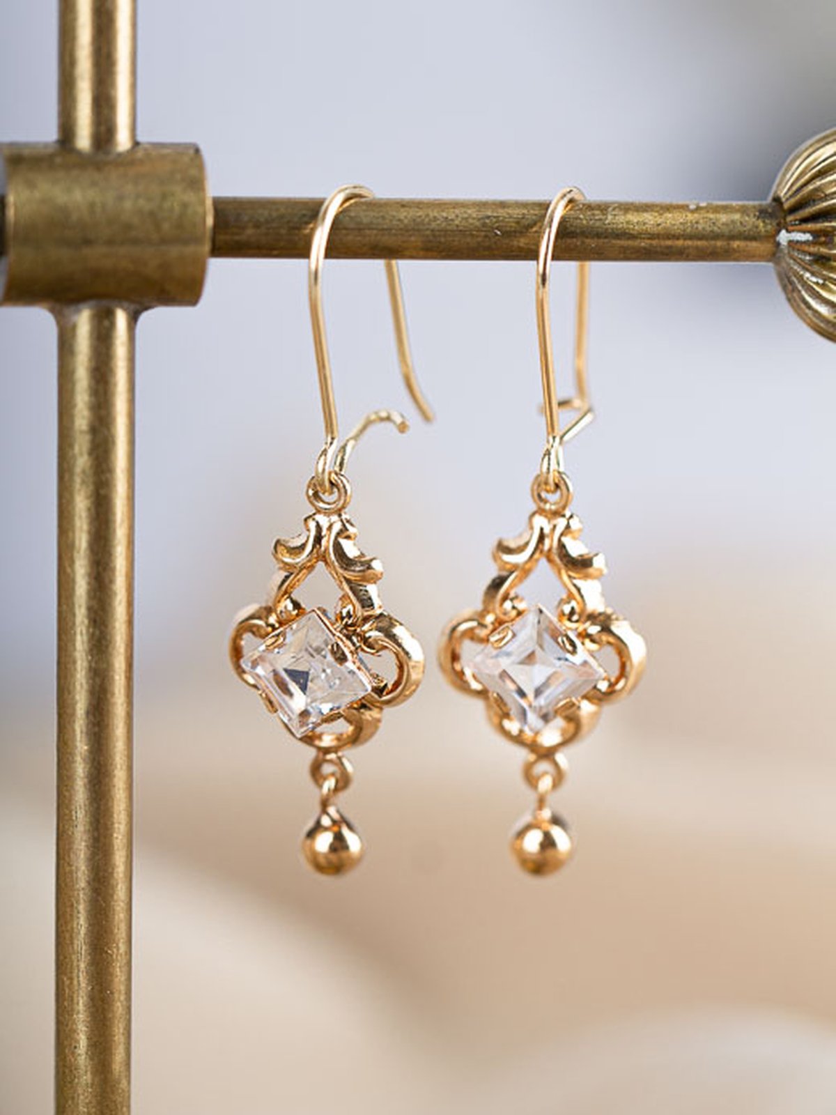 Bedårande örhängen som rör sig vackert med den löst hängande kulan längst ned. Bergkristallerna om 5,3mm skiner vackert vitt i ljuset och ger örhängena det lilla extra.