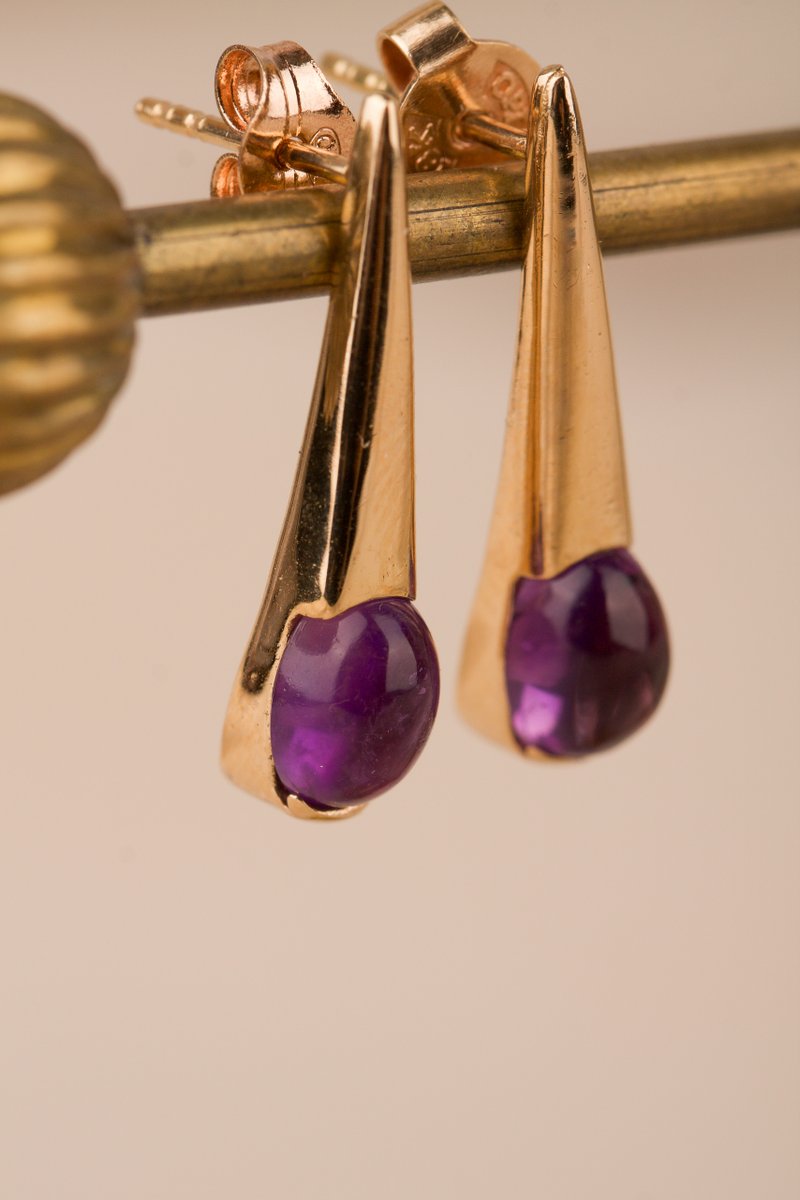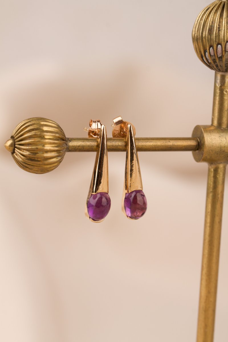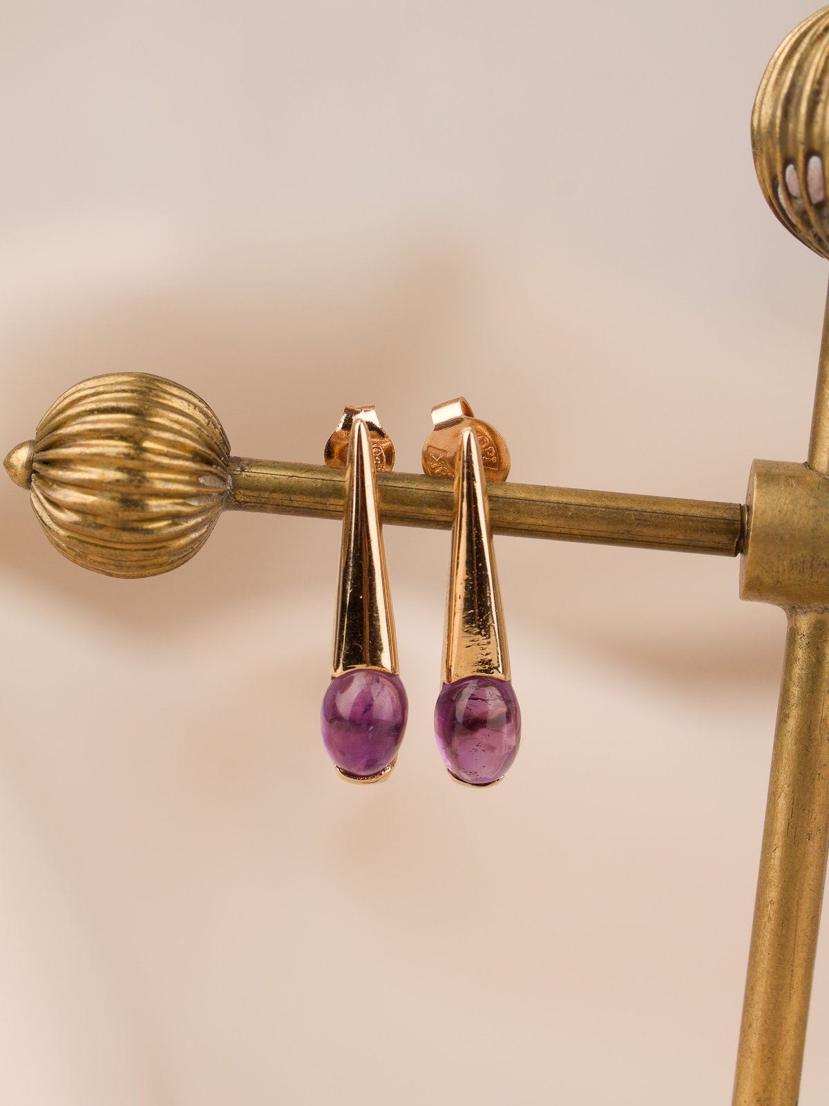 18K guld, två st ovala cabuchonslipade ametister 5 x 6,5 mm