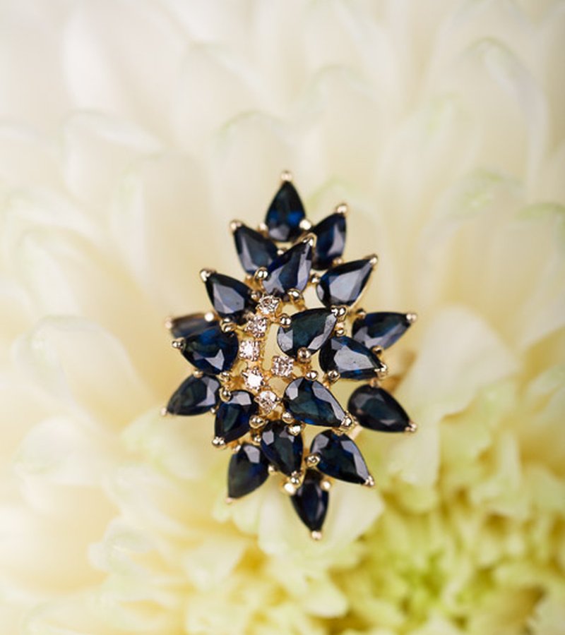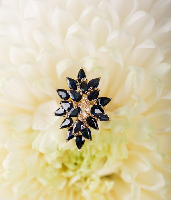 14K guld, 38 st navetteslipade safirer och 6 x 0,01 ct briljanter