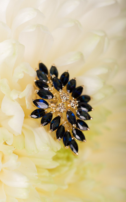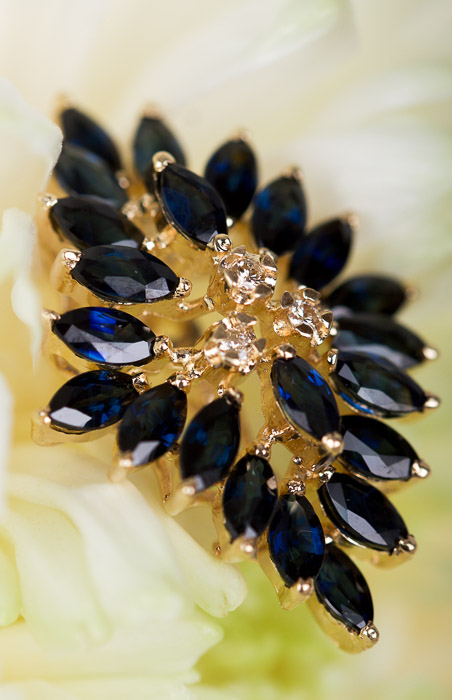 14K guld, 23 st navetteslipade safirer och 3 x 0,01 ct briljanter