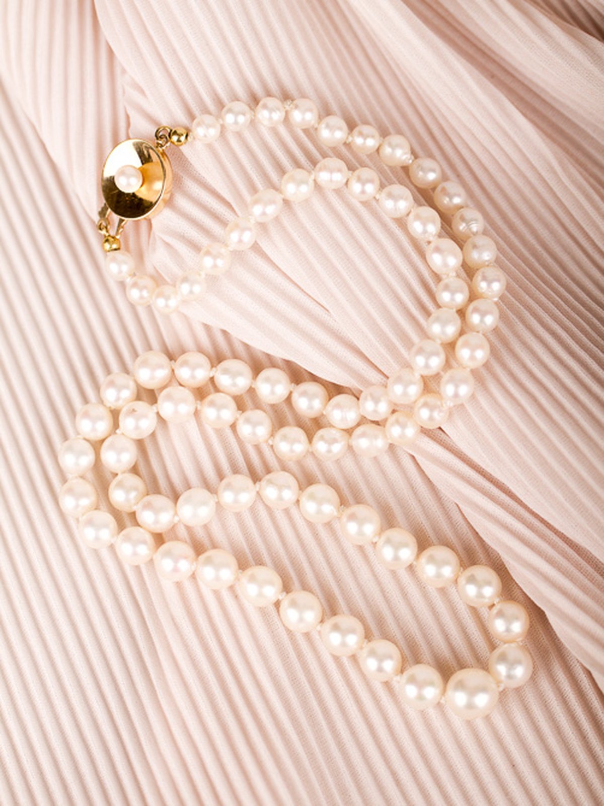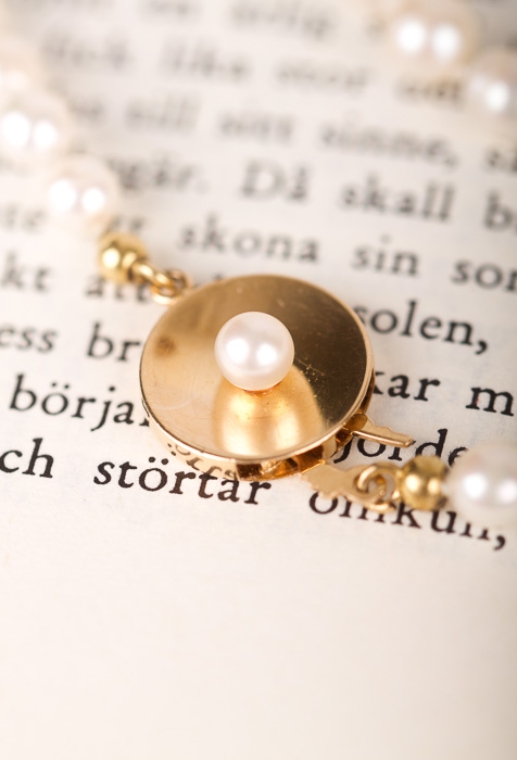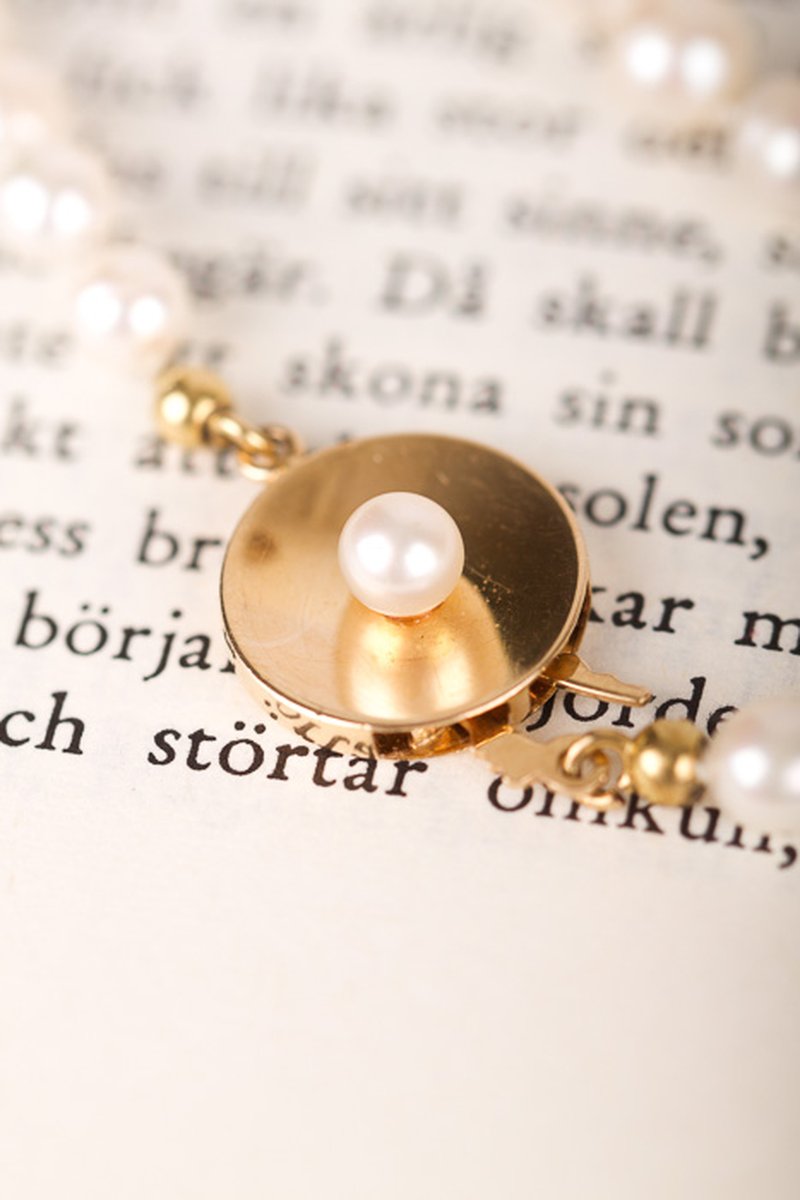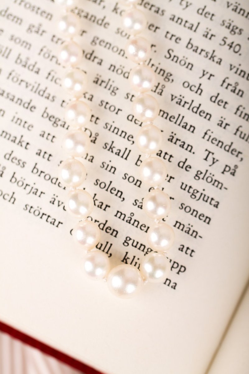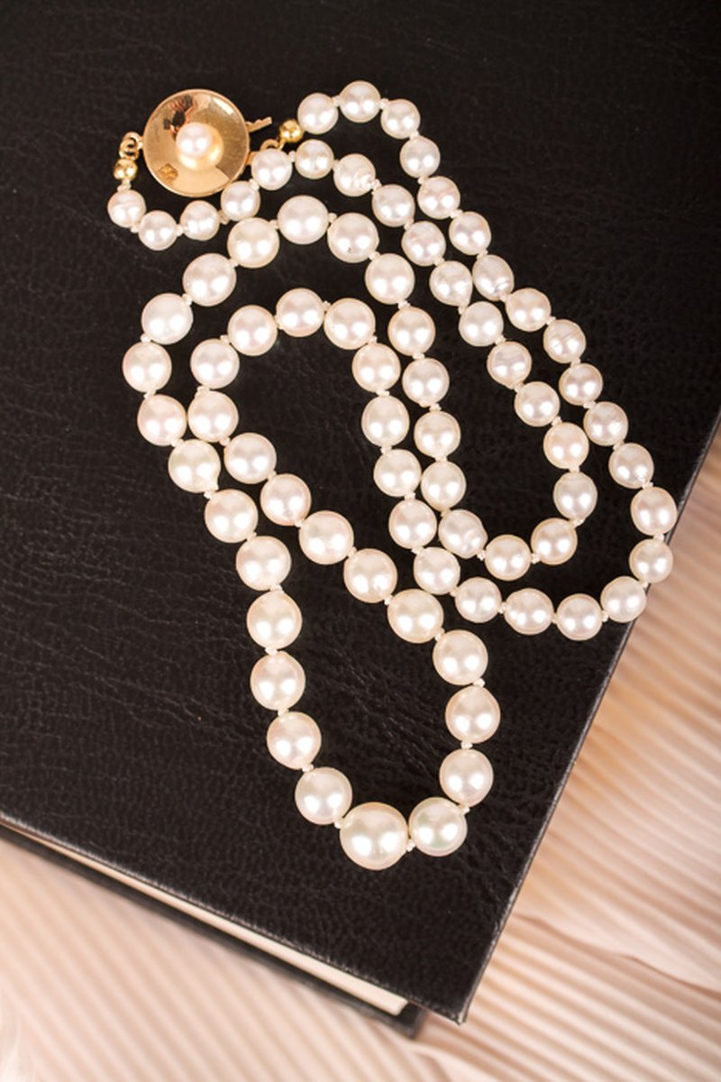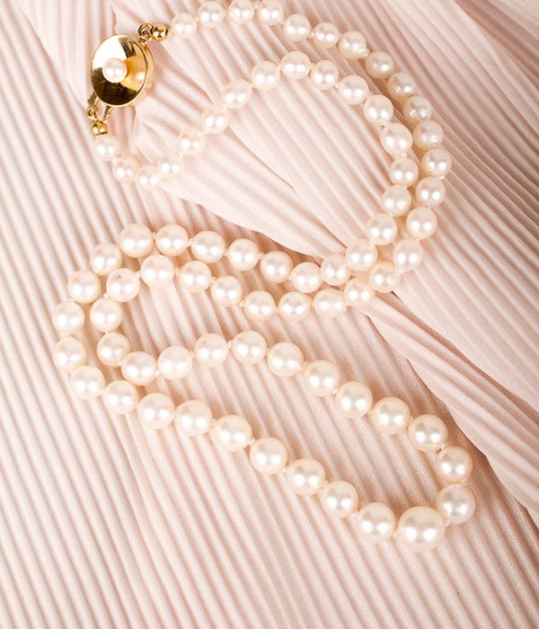 Pärlcollier förvaras bäst liggandes på en mjuk yta, dock inte av bomull. Detta torkar ur pärlorna.