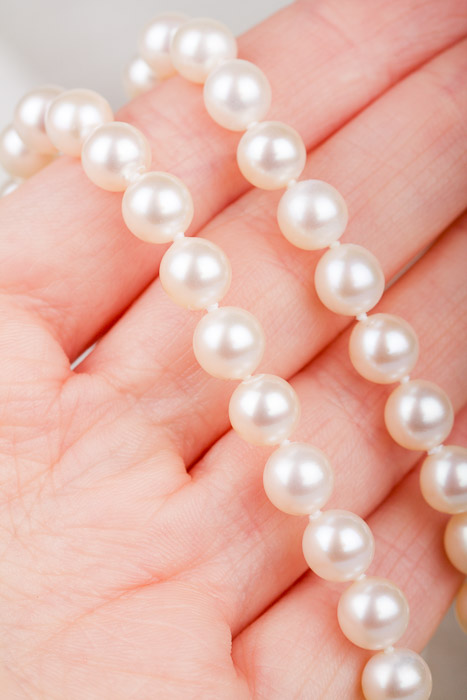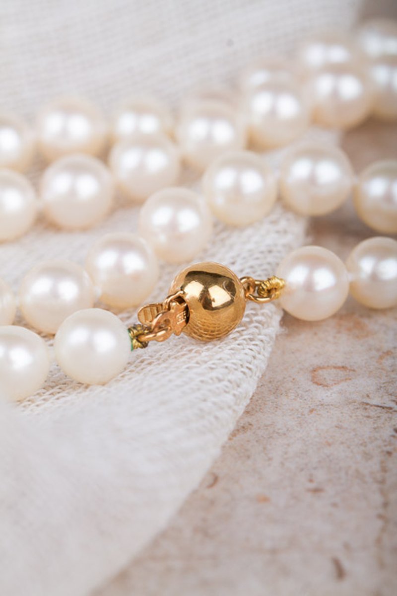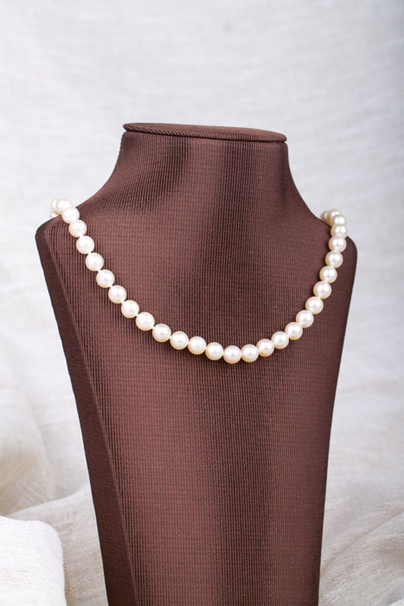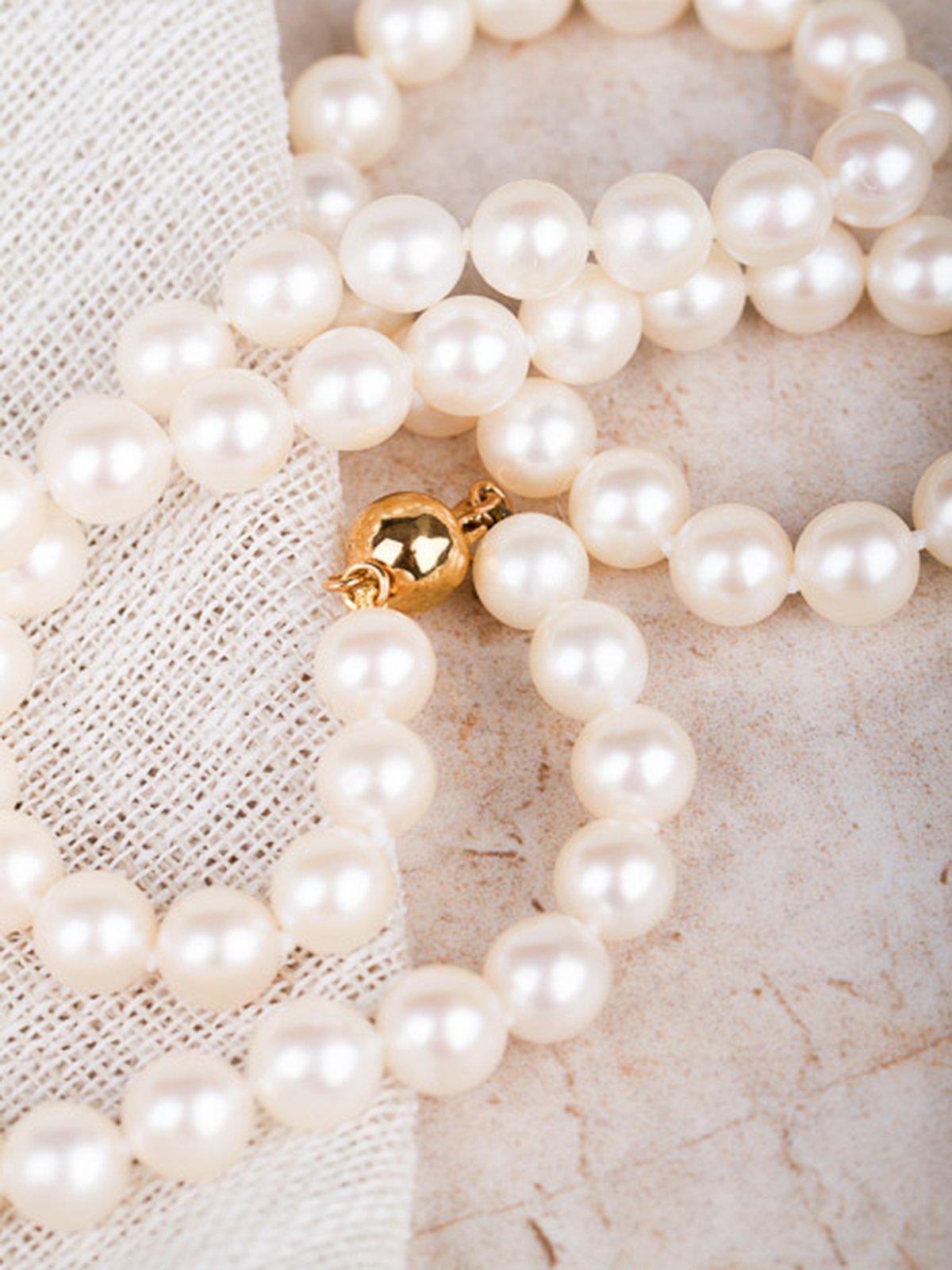 Klassiskt pärlcollier med fina jämnstora pärlor.