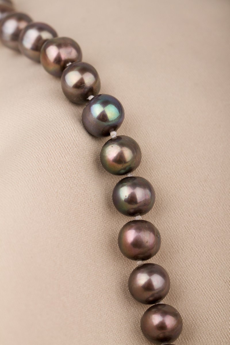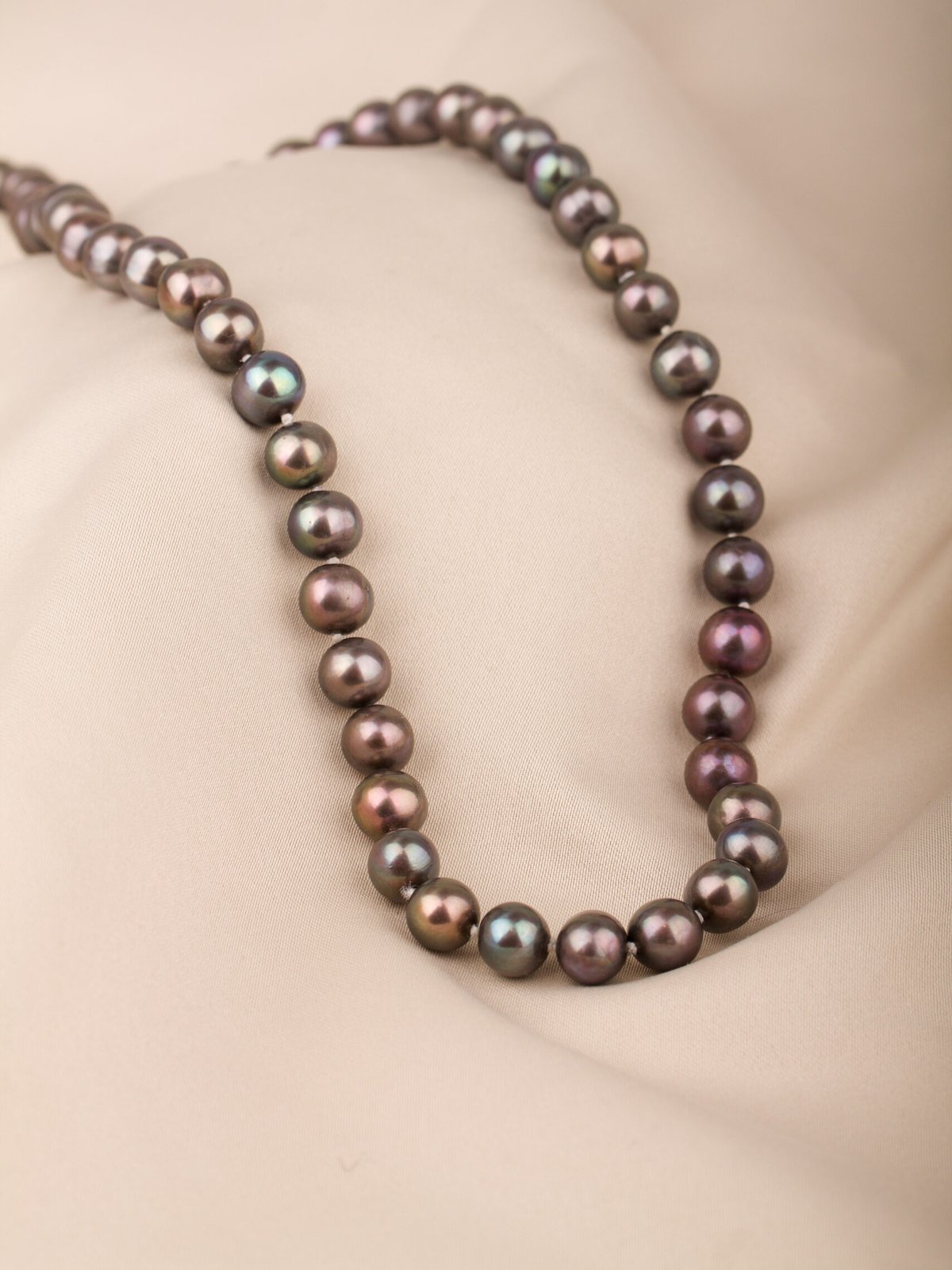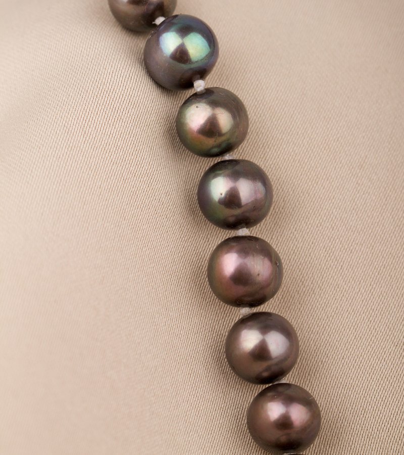 Pärlcollier förvaras bäst liggandes på en mjuk yta, dock inte av bomull. Detta torkar ur pärlorna.
