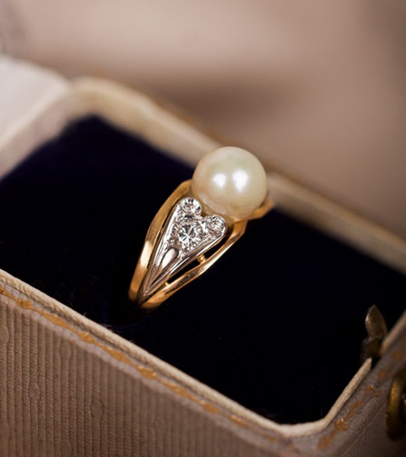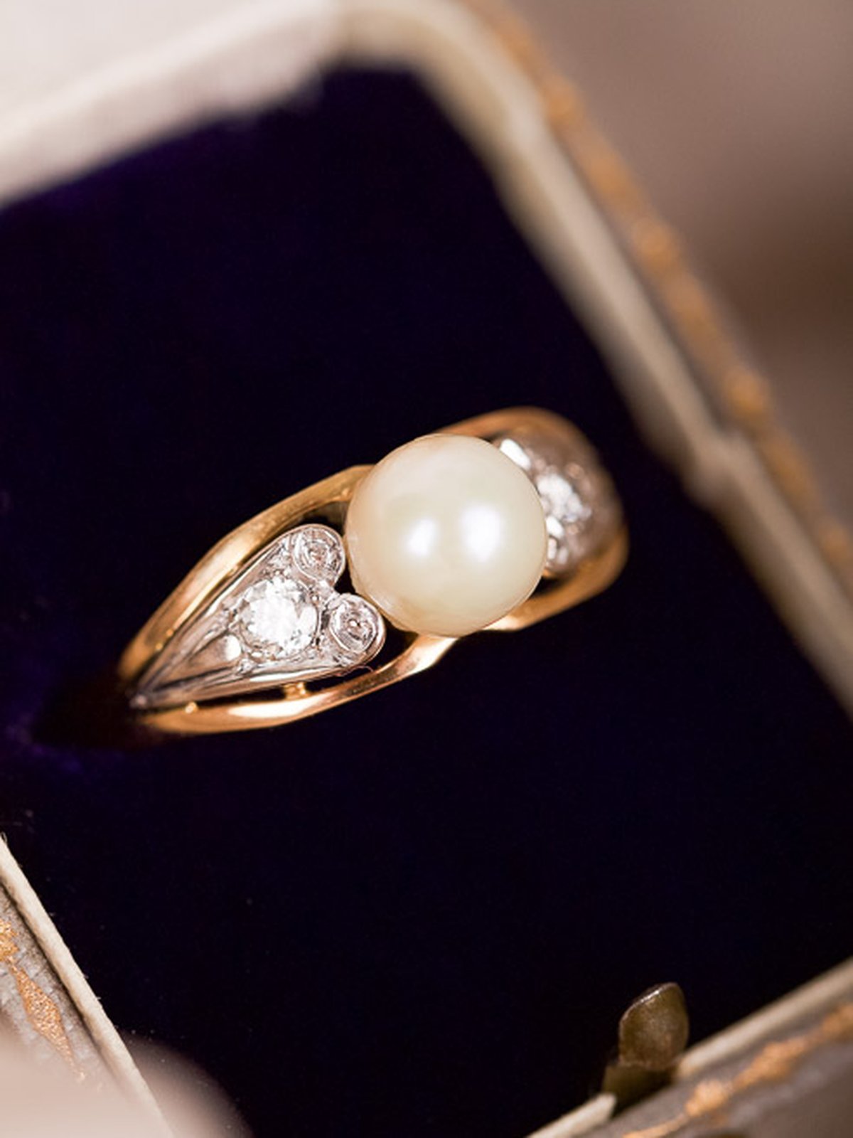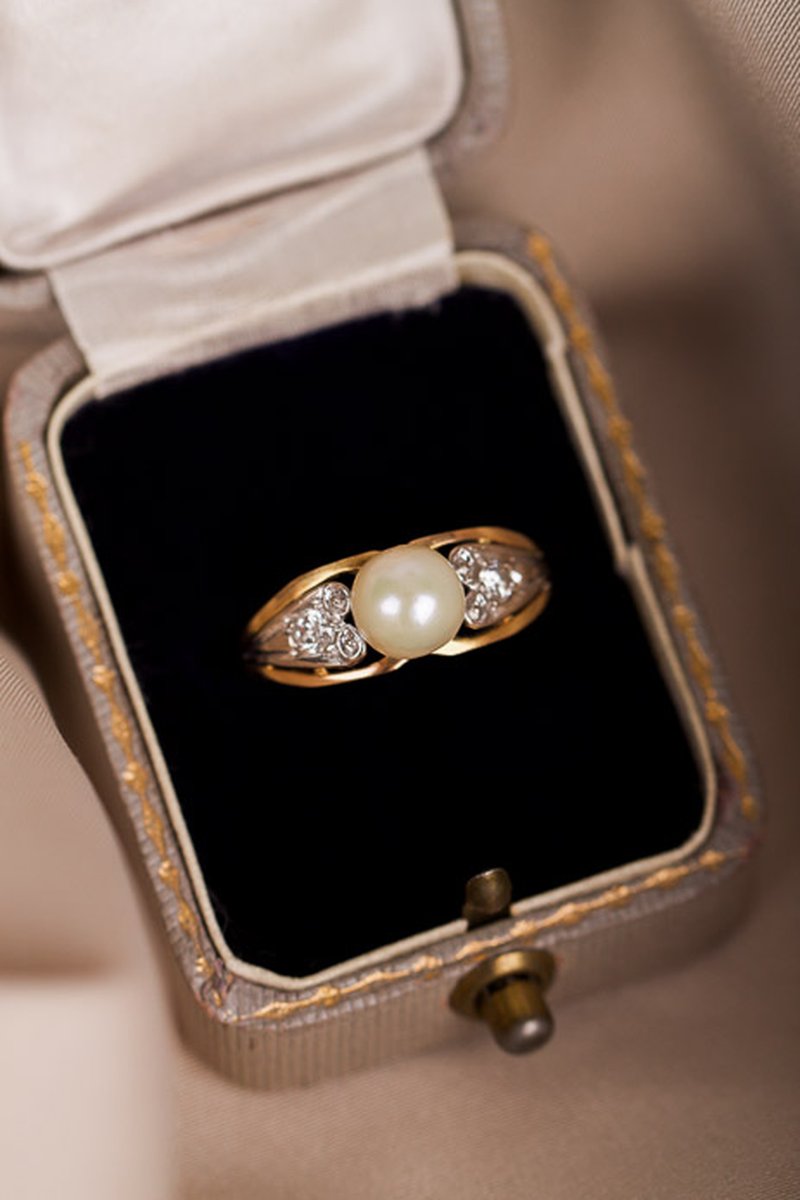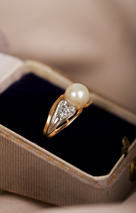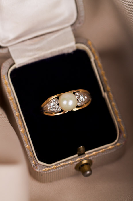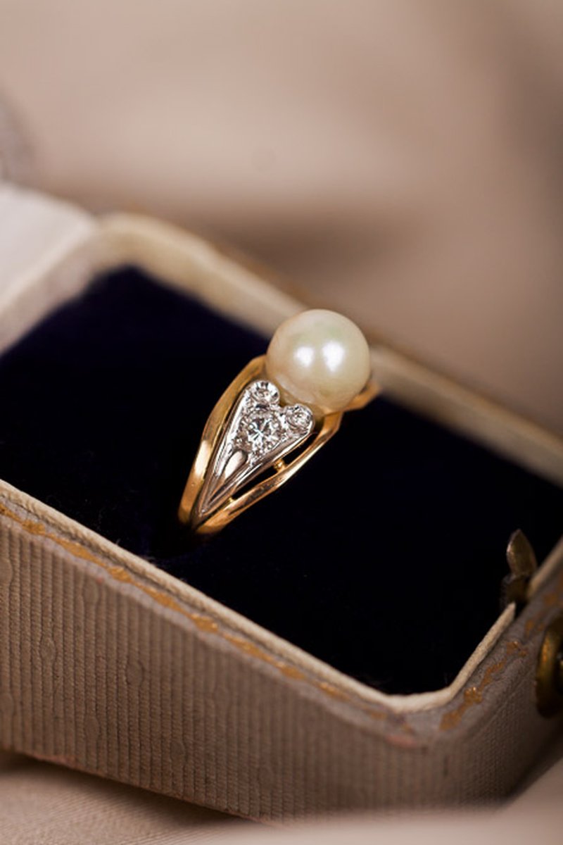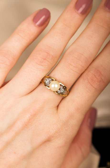 18k guld, odl. pärla 6 mm och 2 x 0,05 ct