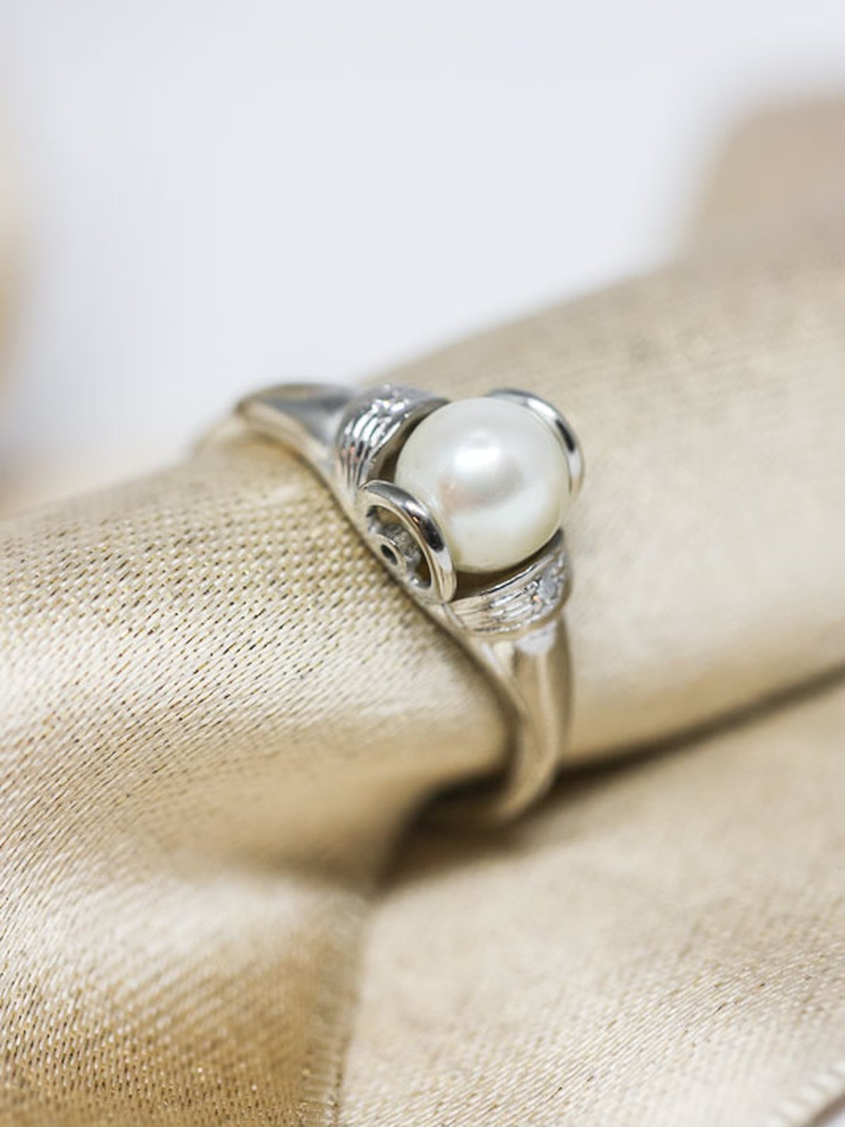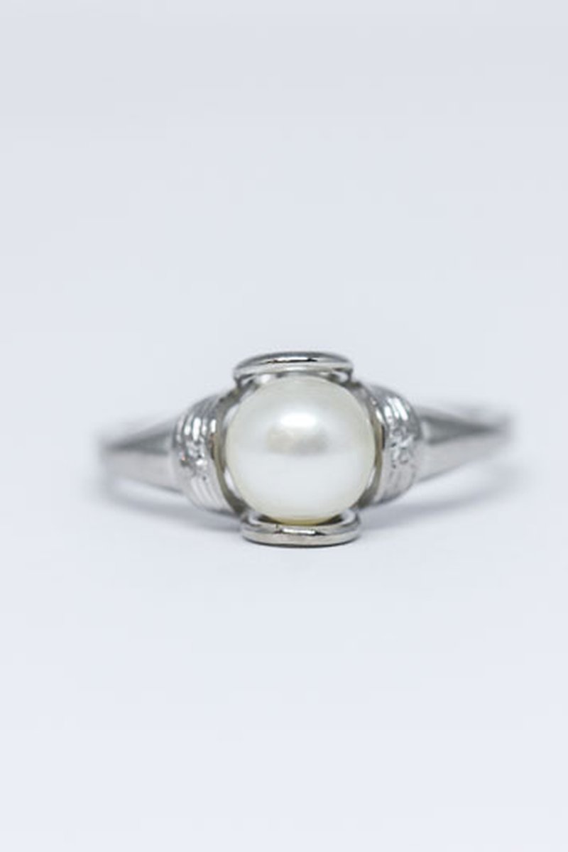 18k vitguld, odlad pärla, vita imitationsstenar