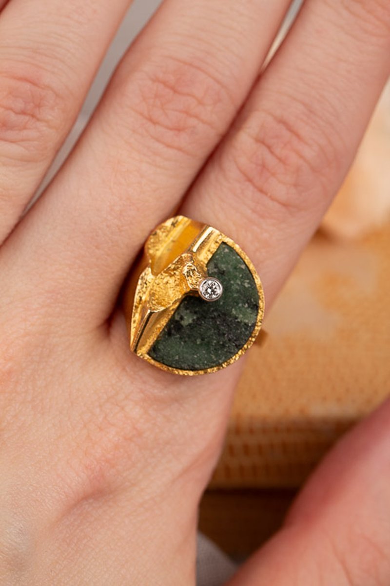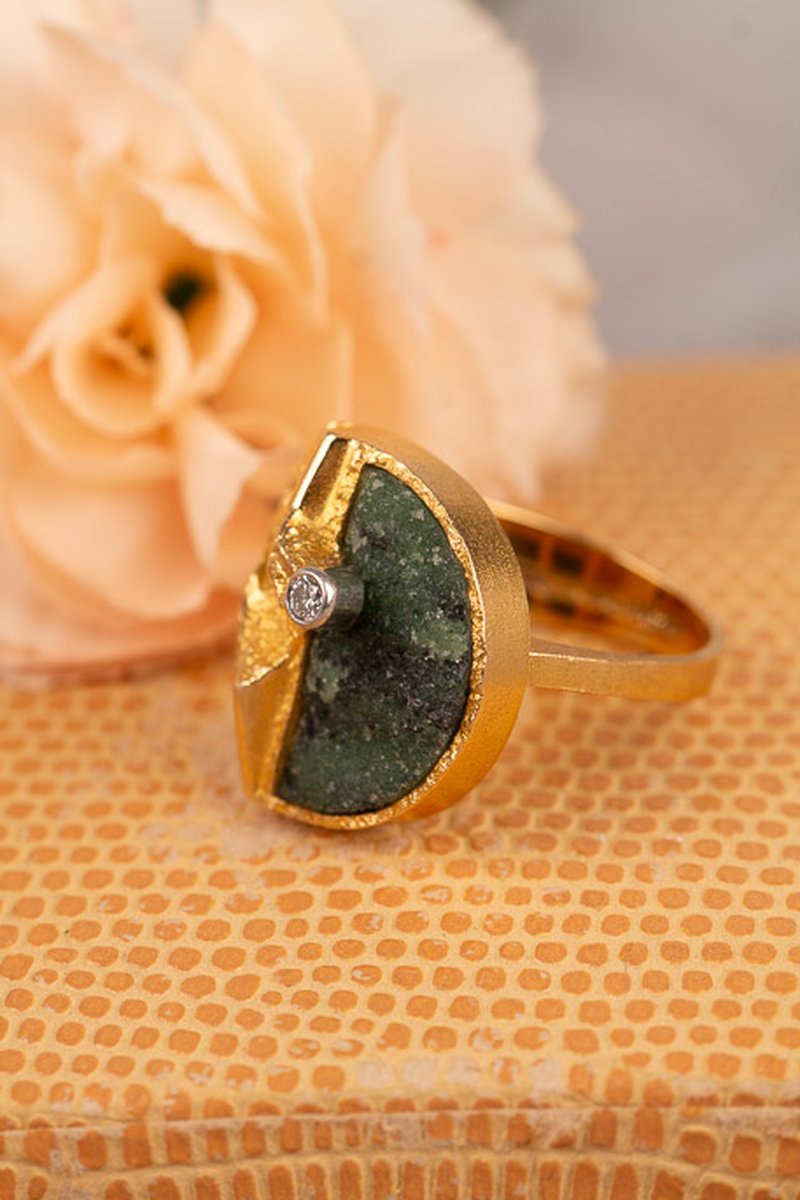 18K guld, zoisit och en briljant 0,05 ct