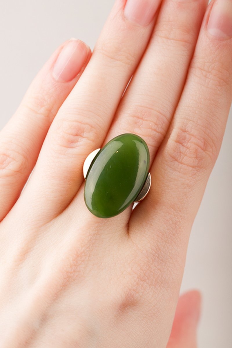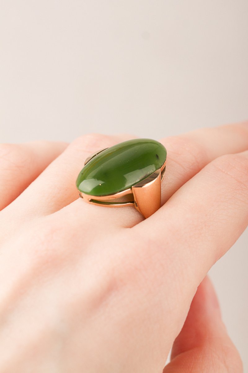 18K guld, jade 15 x 25 mm