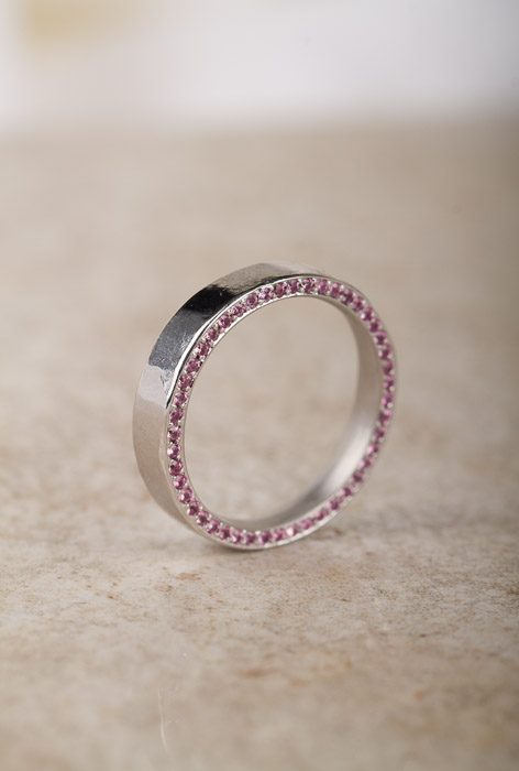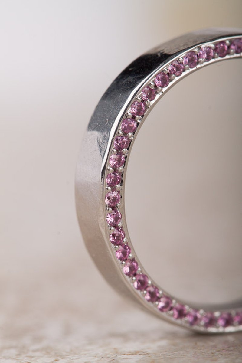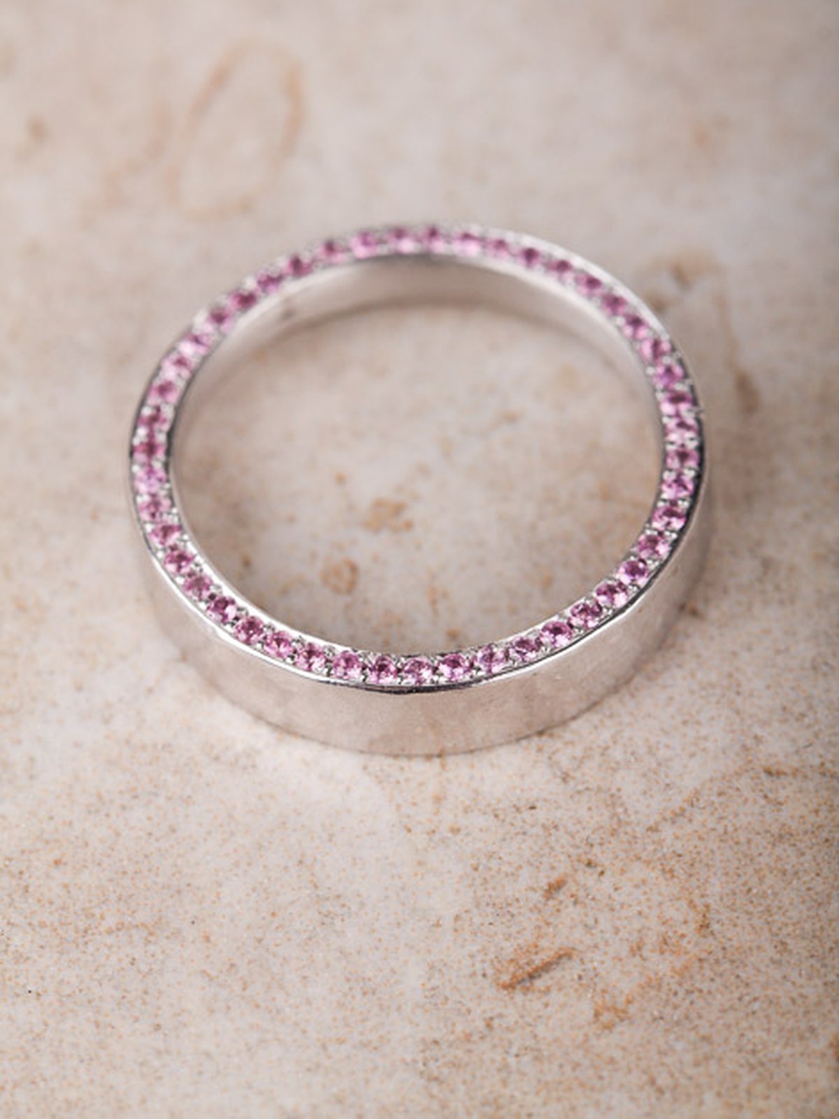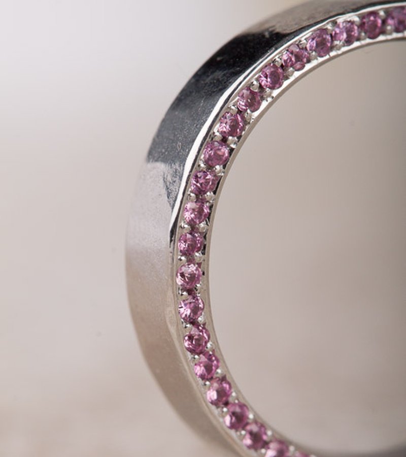 18k vitguld, 46 st rosa safirer á 0,7 mm