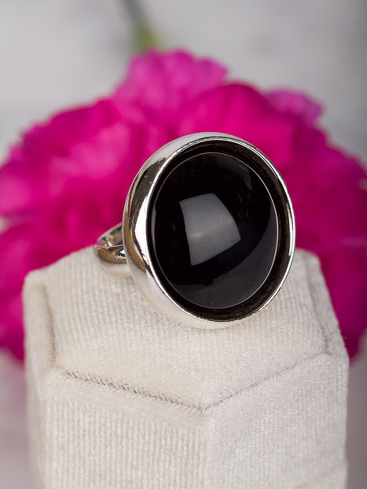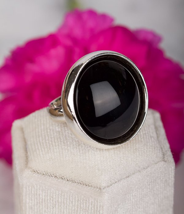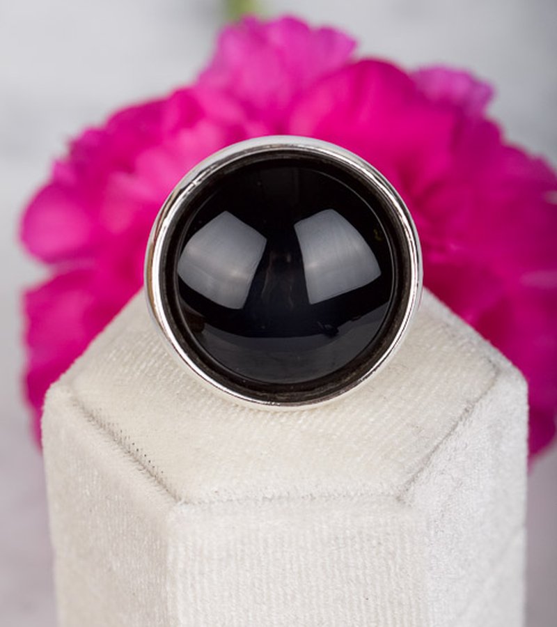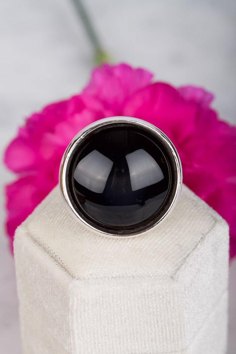 Fantastisk ring med en stor kupad onyx infattad i silver. Tecken på slitage syns på undersidan av ringens skena.