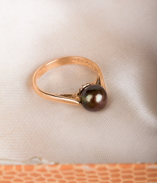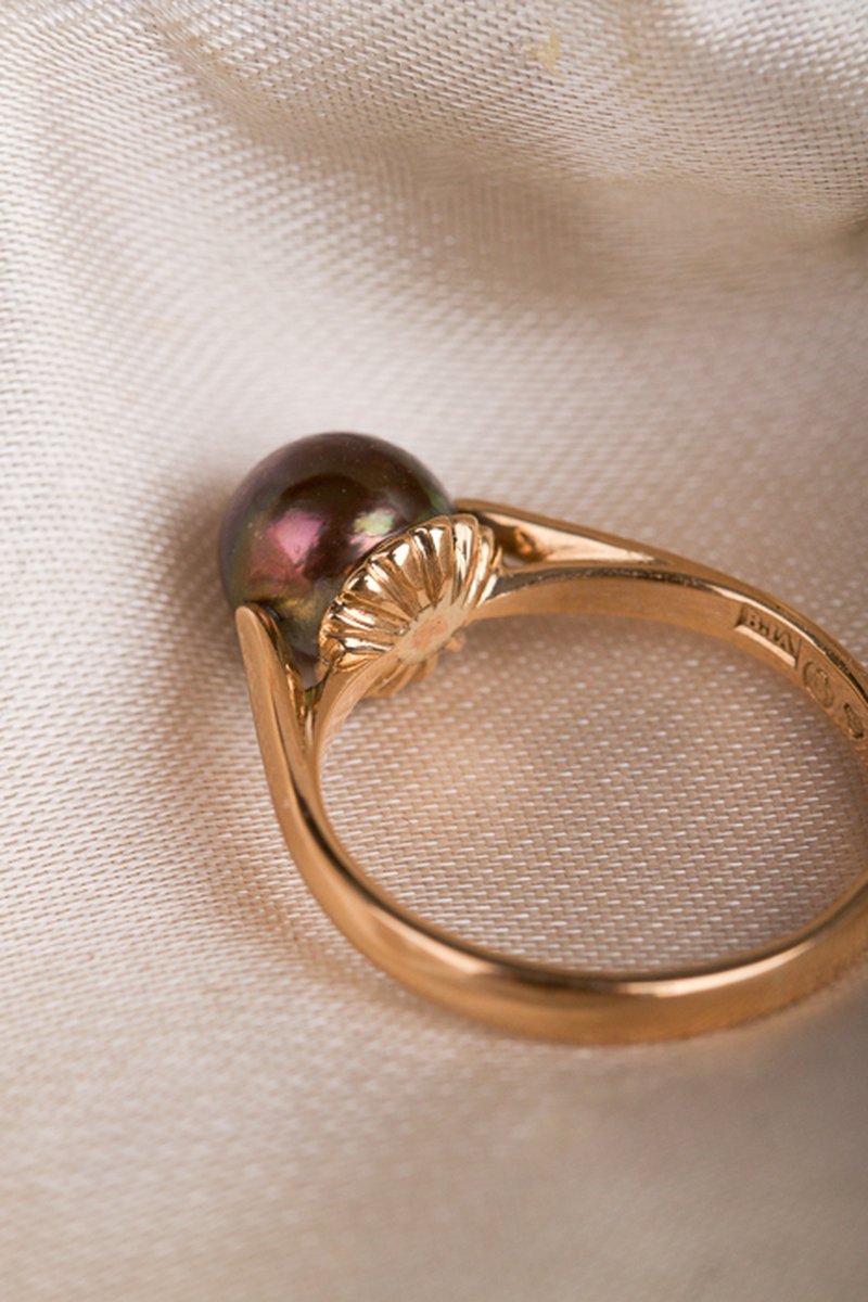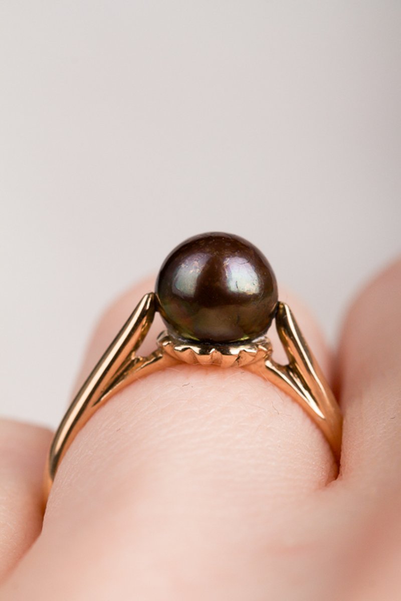 18K guld, odlad svart pärla 7 mm
