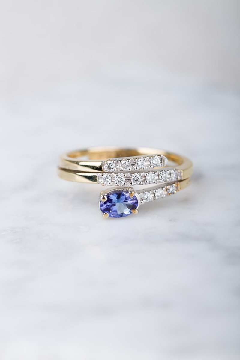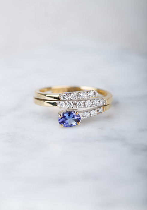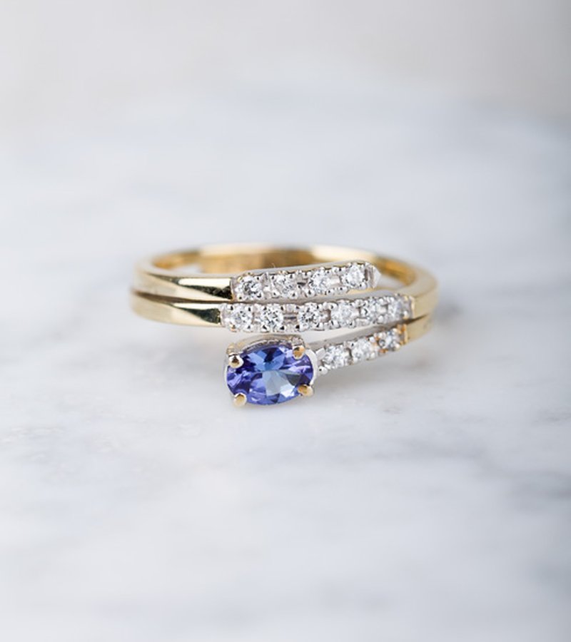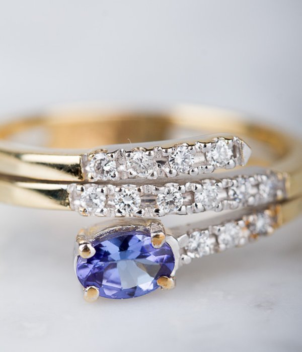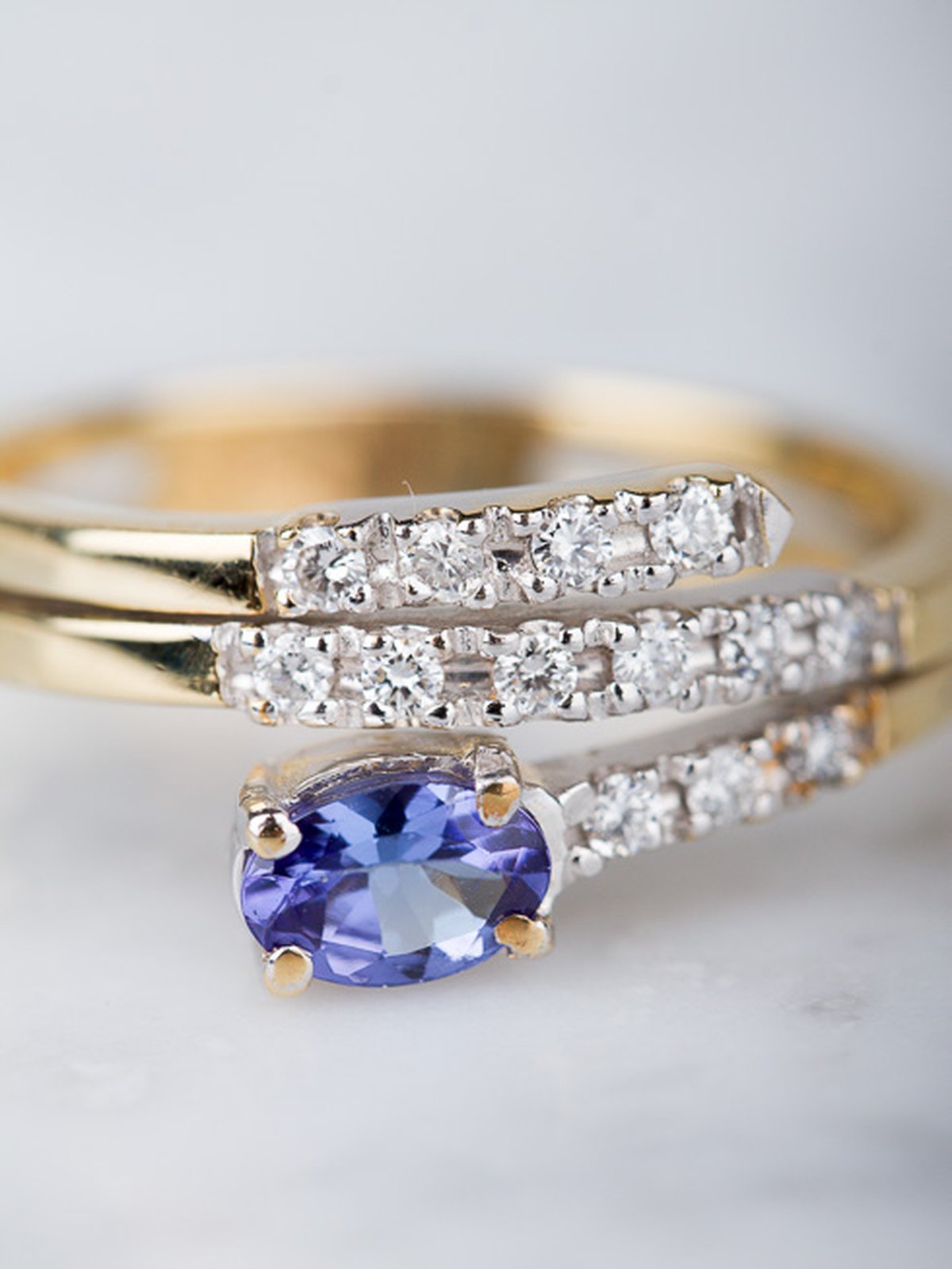 18K guld, Tanzanit 6 x 4 mm (0,46 ct) samt 13 briljanter totalt 0,20 ct