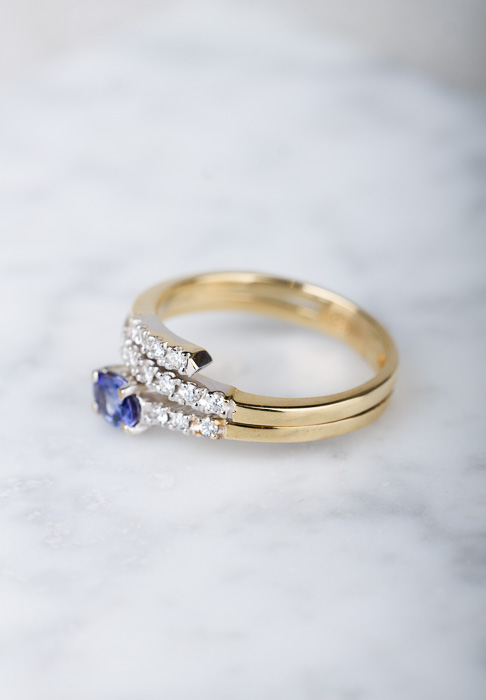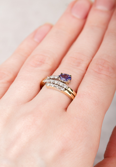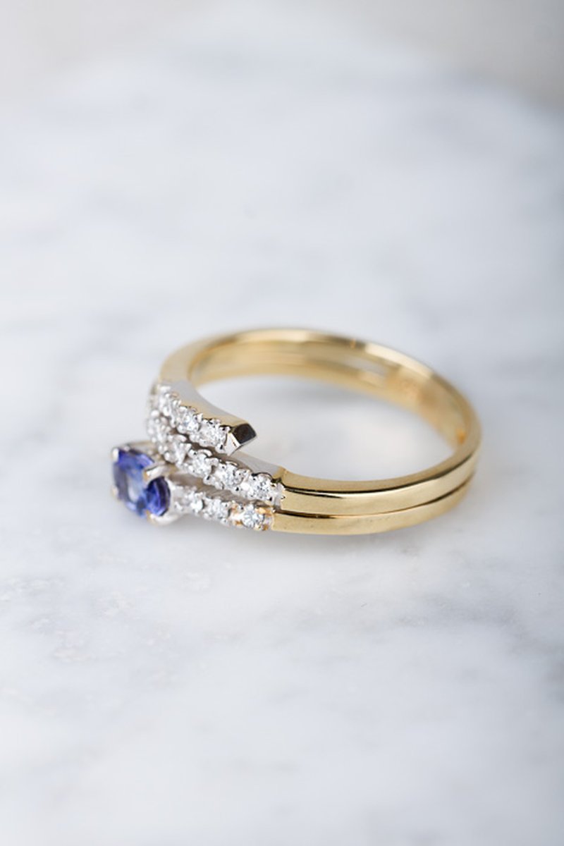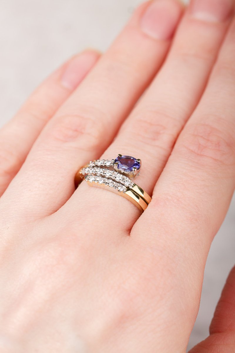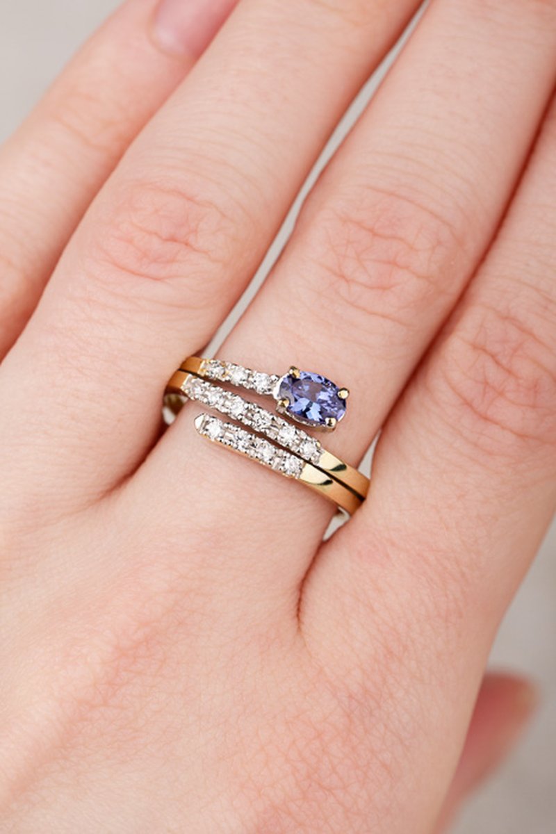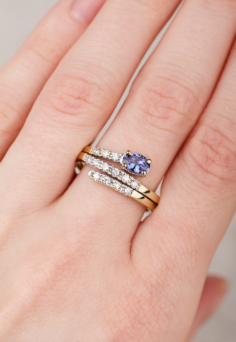 18K guld, Tanzanit 6 x 4 mm (0,46 ct) samt 13 briljanter totalt 0,20 ct