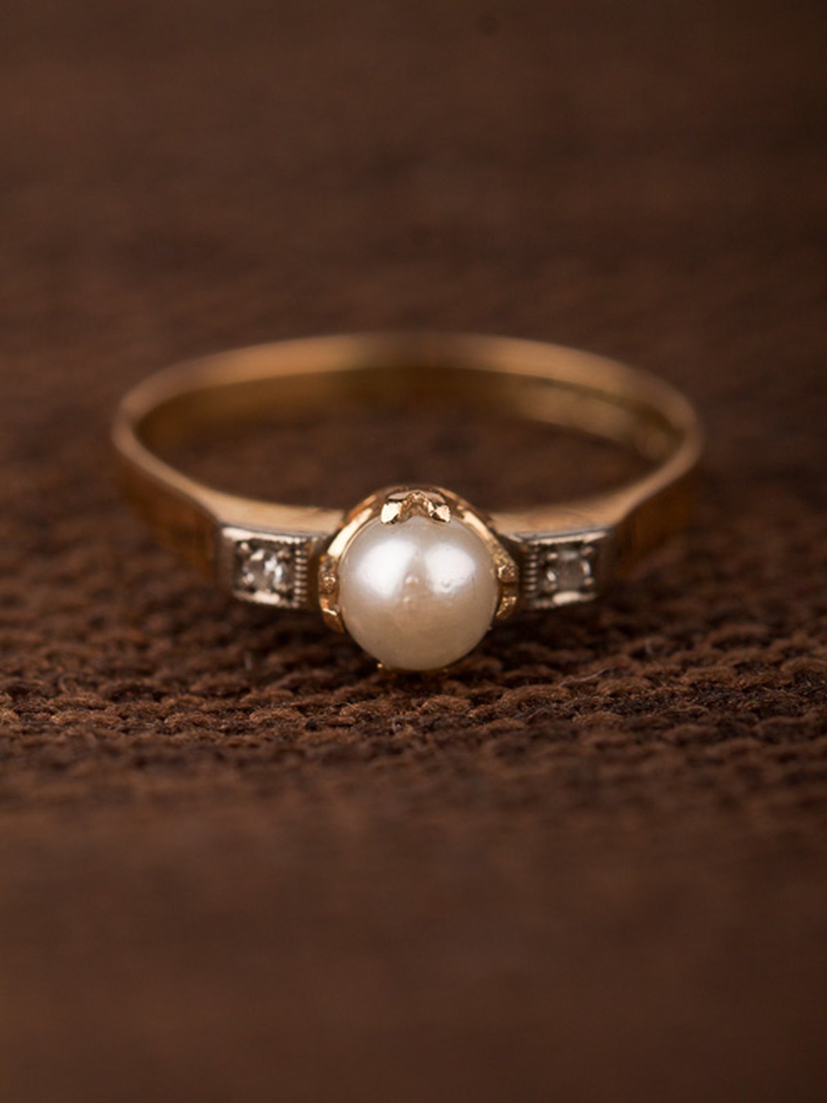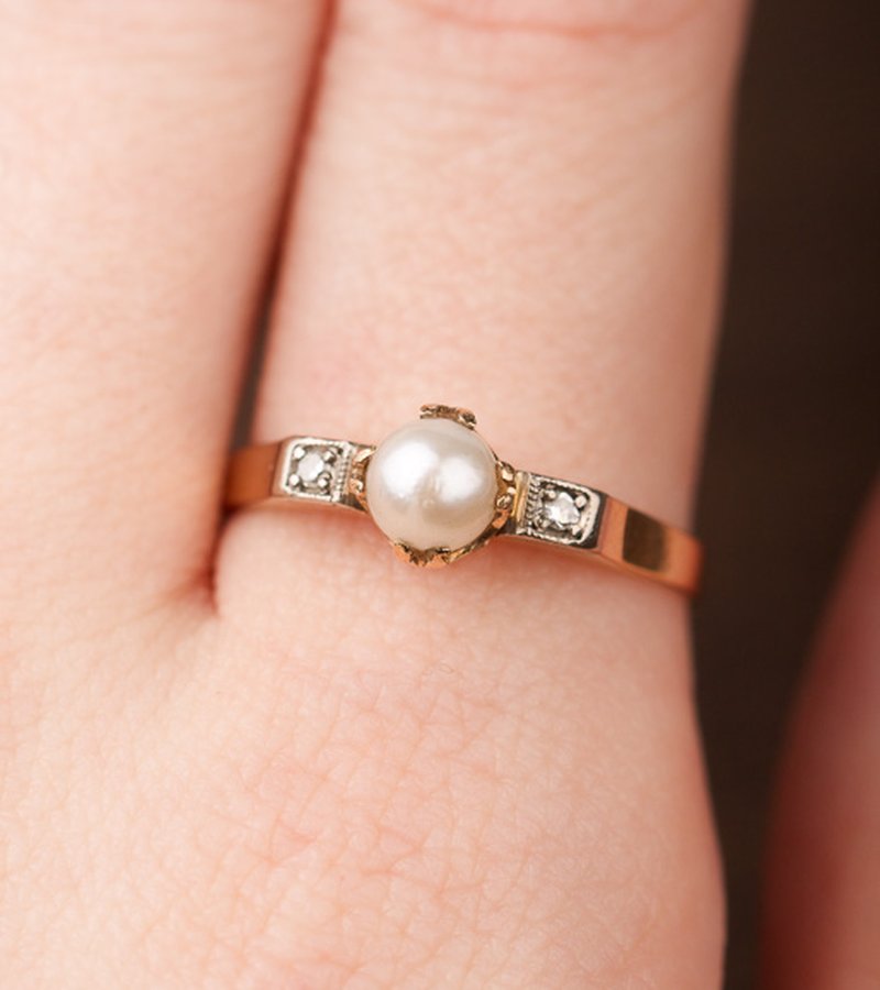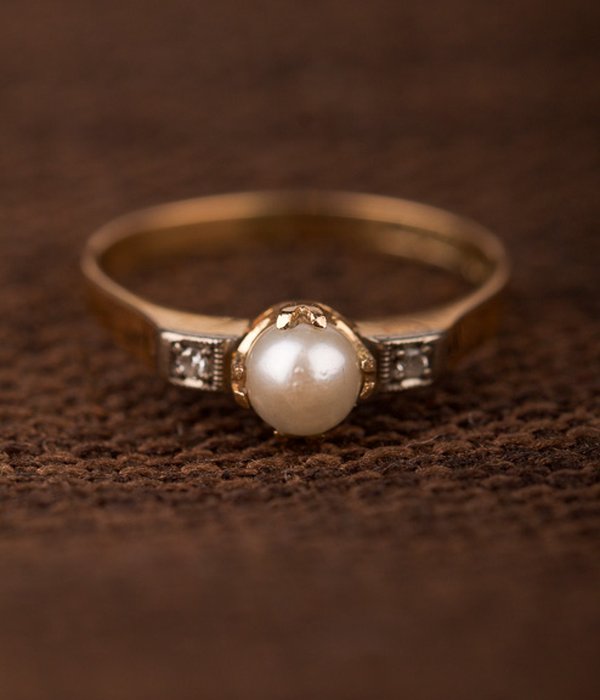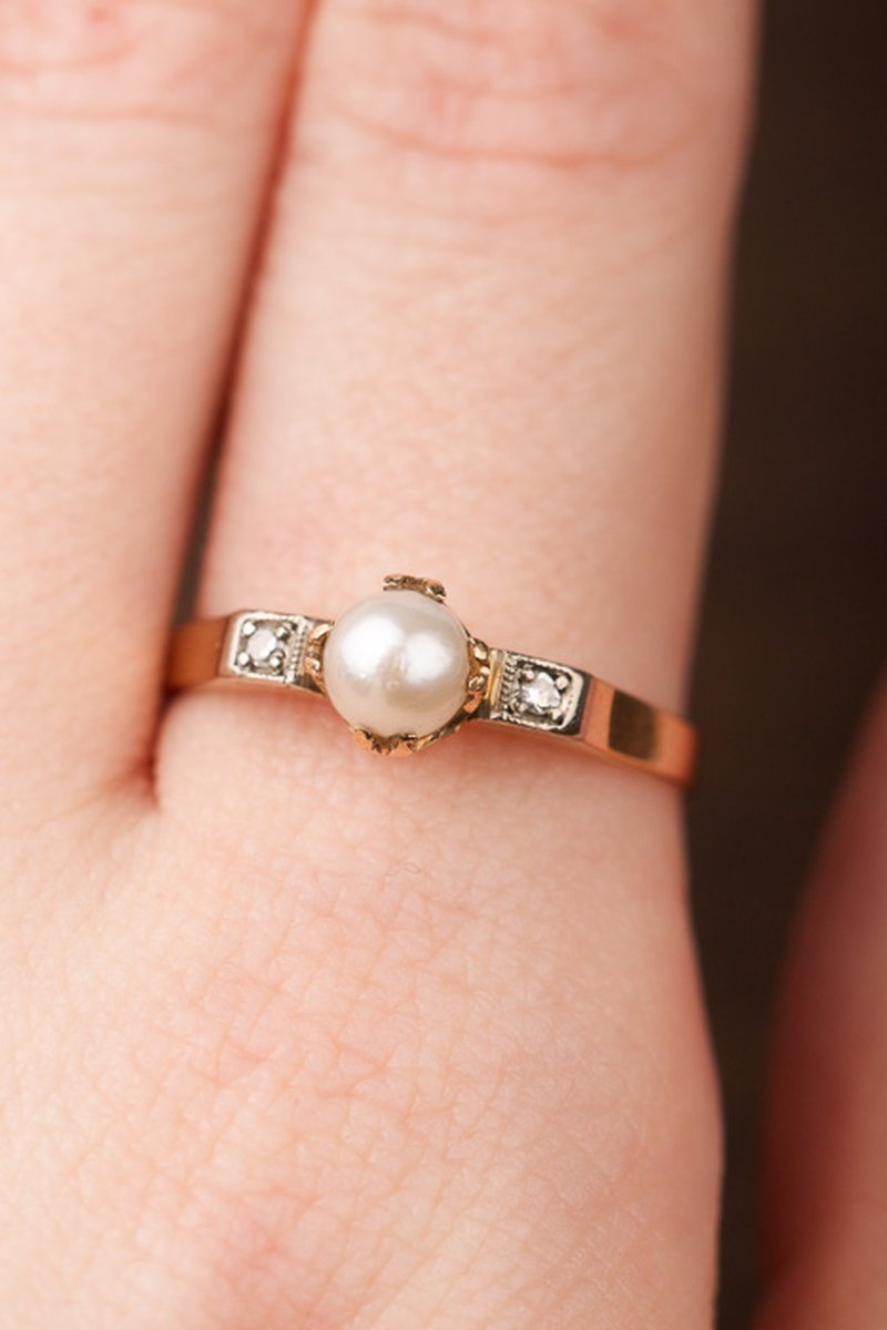 18K guld, odlad pärla 5 mm och åttkantsslipade diamanter 2 x 0,01 ct