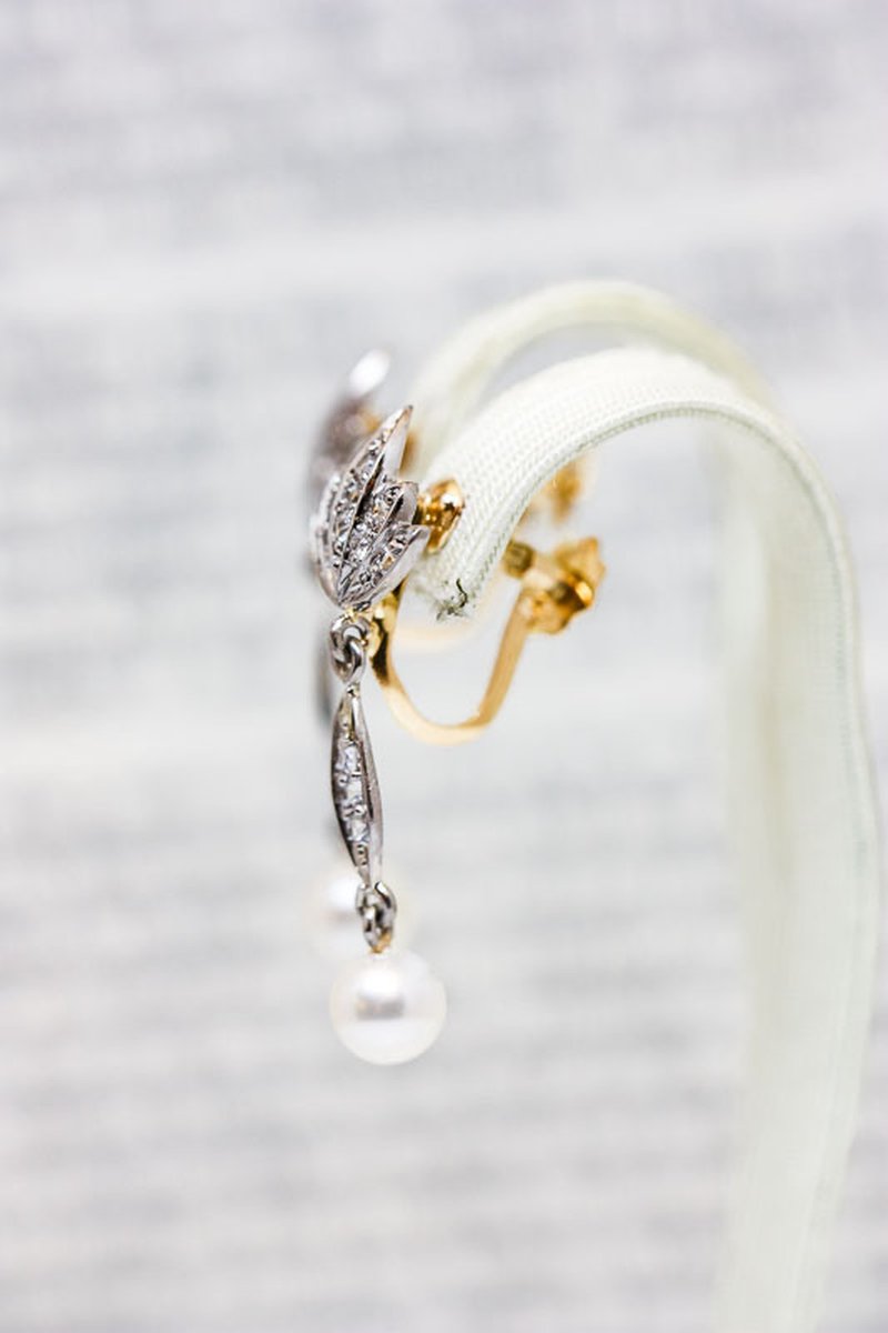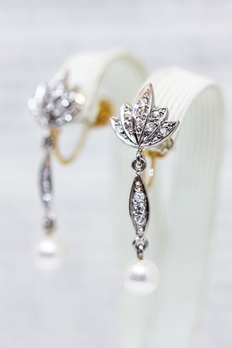 Romantiska örhängen med skruvad baksida för dig utan hål i öronen. Örhängena är tillverkade i 18k guld med silverinfattade stenar.