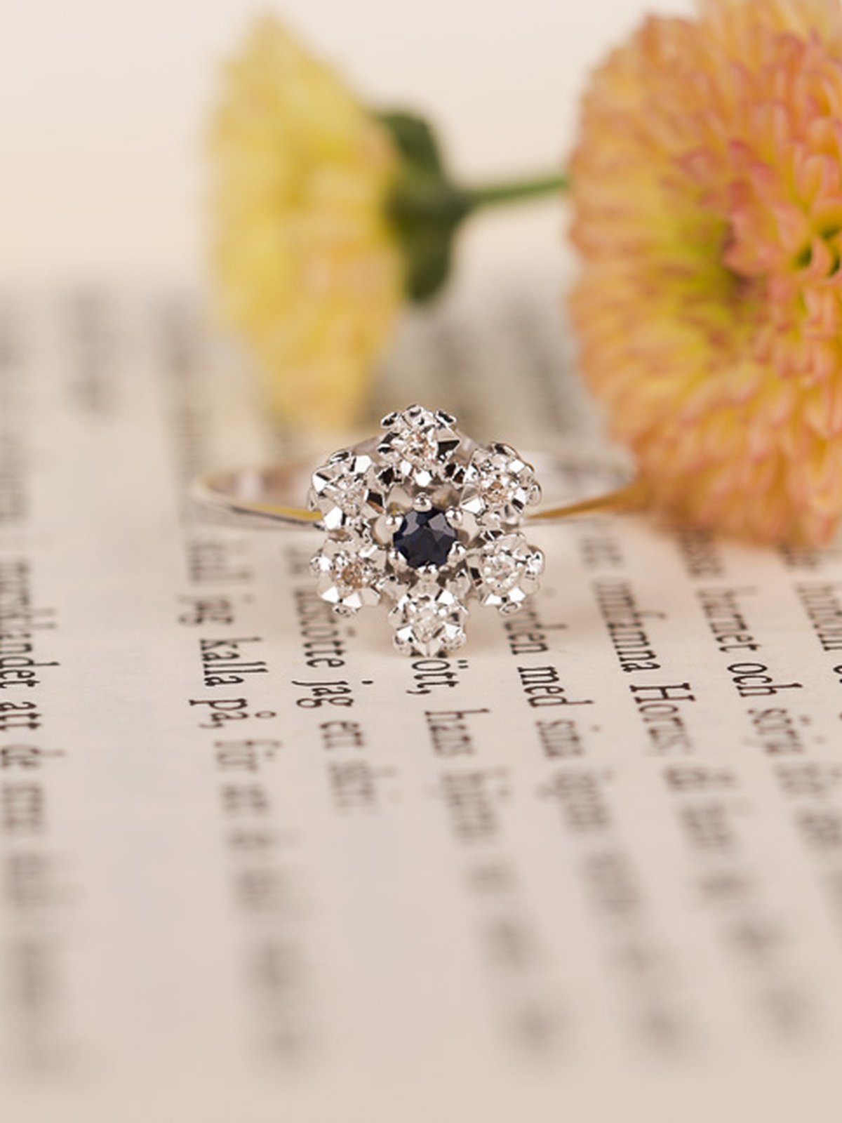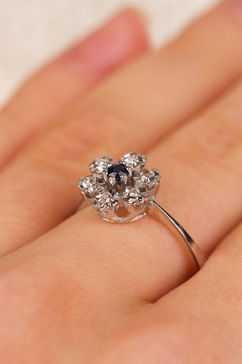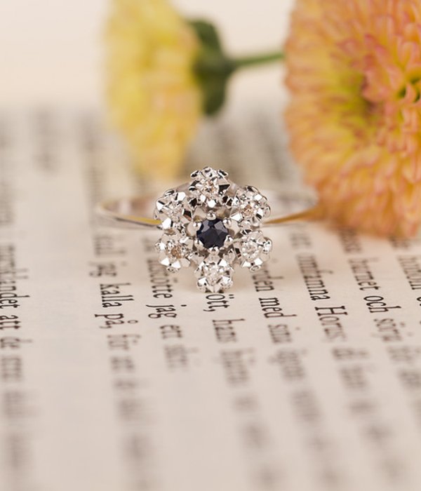 18k vitguld, en safir, 6 x 0,005 ct diamanter