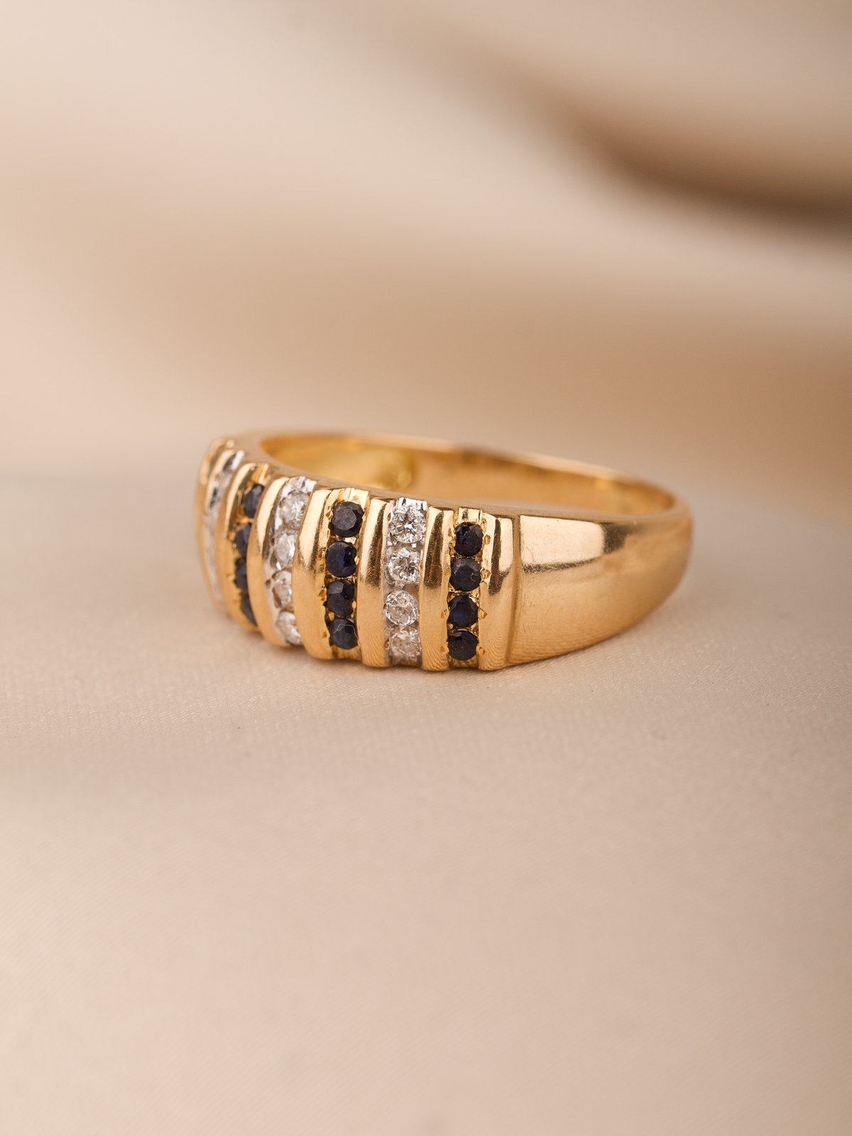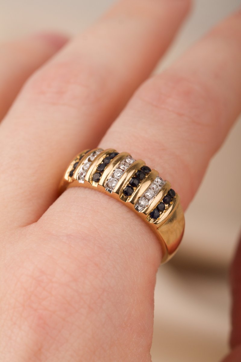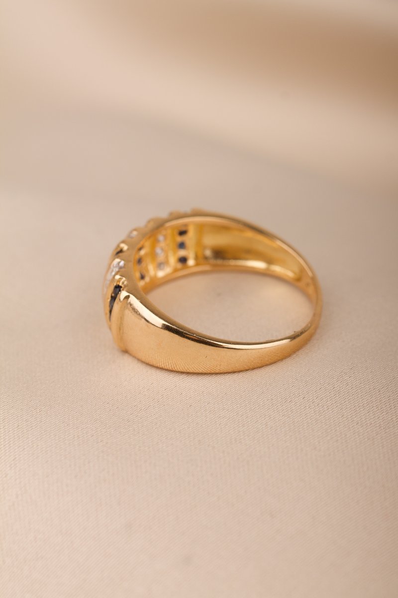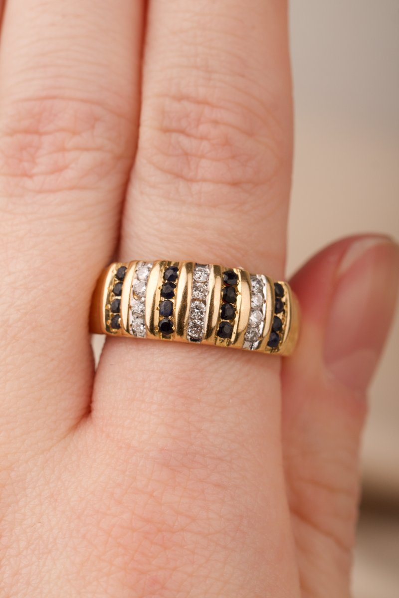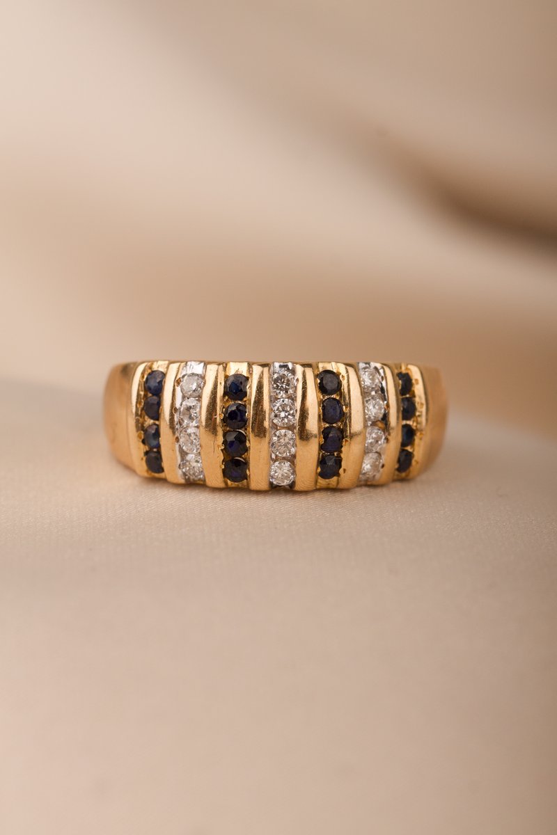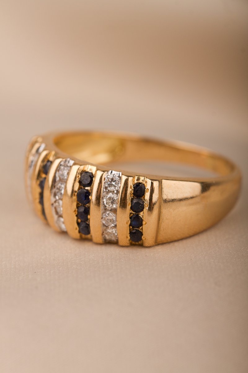 18K guld, 12 st safirer ca 1,5 mm, 12 st briljantslipade diamanter tot. 0,23 ct
