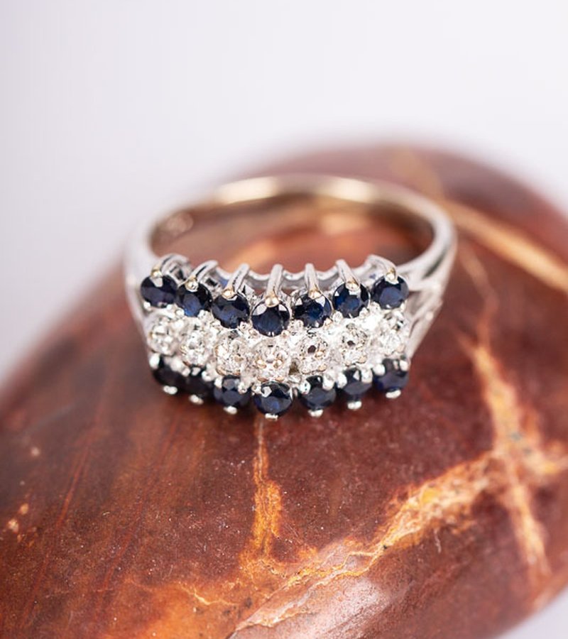 18k, safir och 9st 0,01ct diamanter