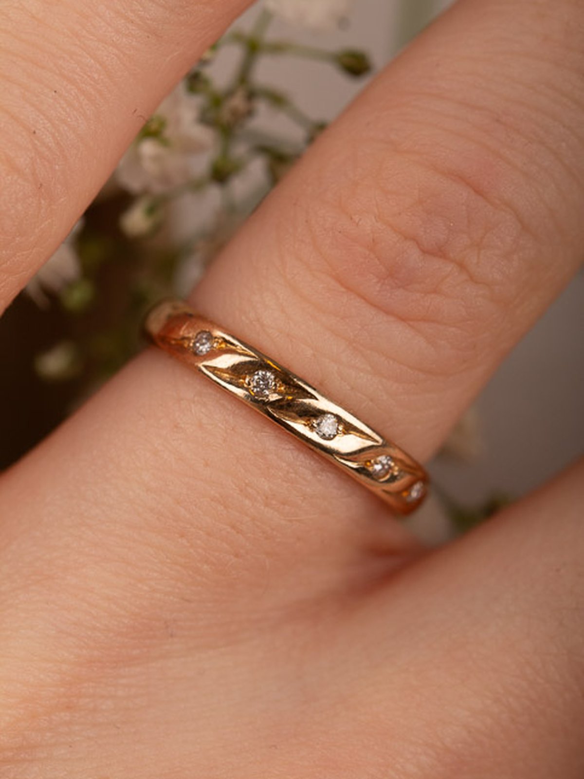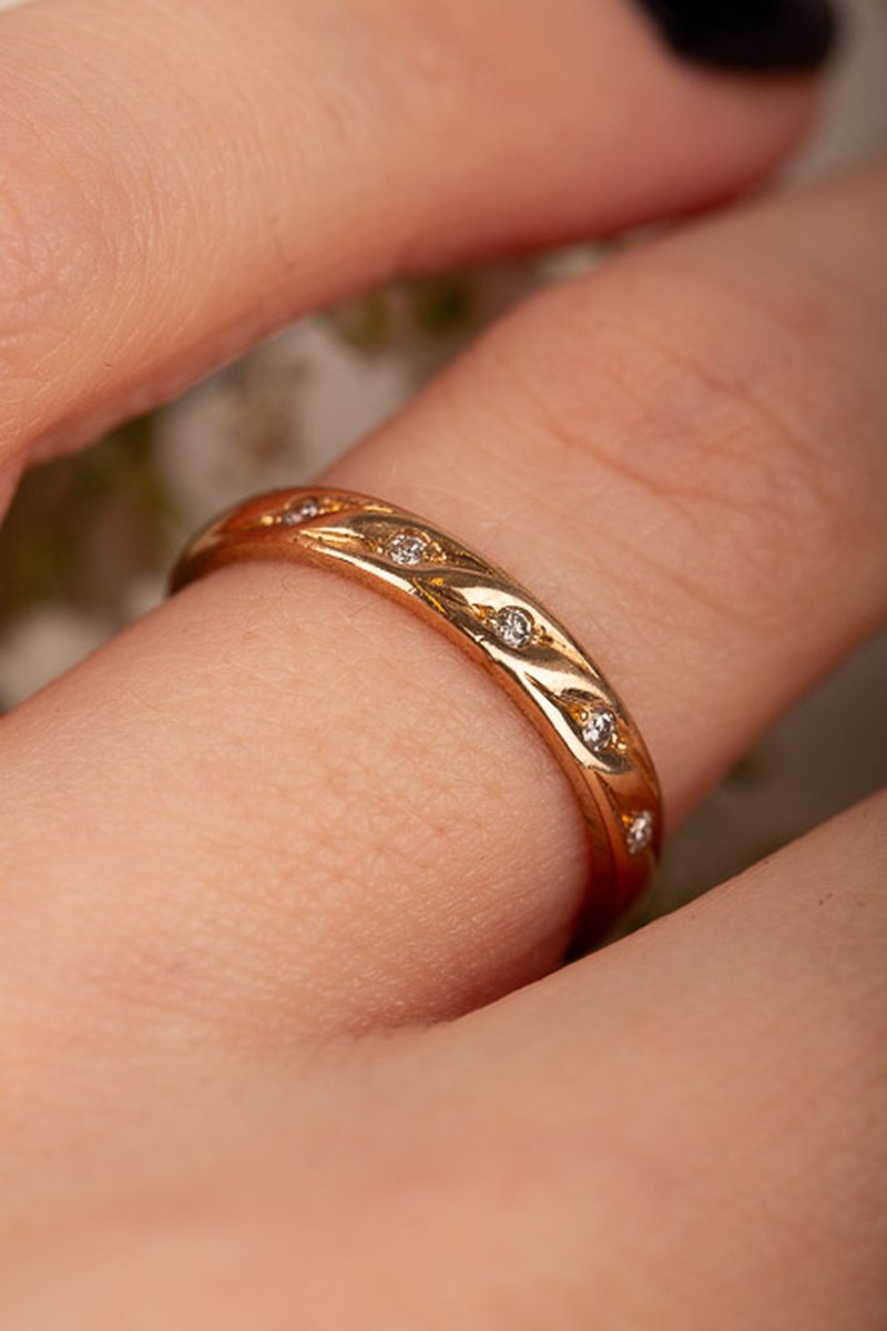 Vi erbjuder storleksändring av ringar om den du hittat inte passar dig i storlek. Om det finns risk för att ringen eller steninfattningarna på något sätt förstörs eller försvagas av storleksändringen så avböjer vi arbetet.