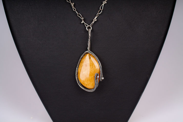 Läckert bärnstenshalsband med gul opak bärnsten.