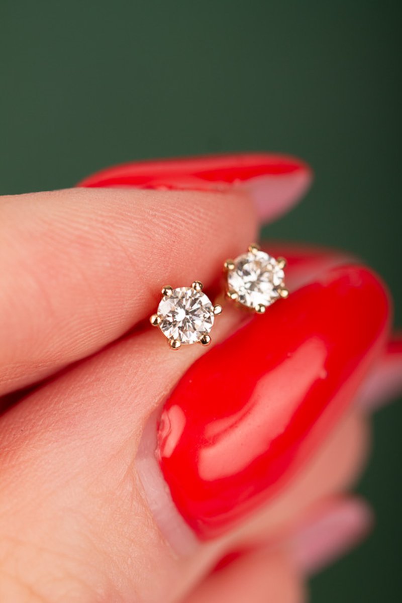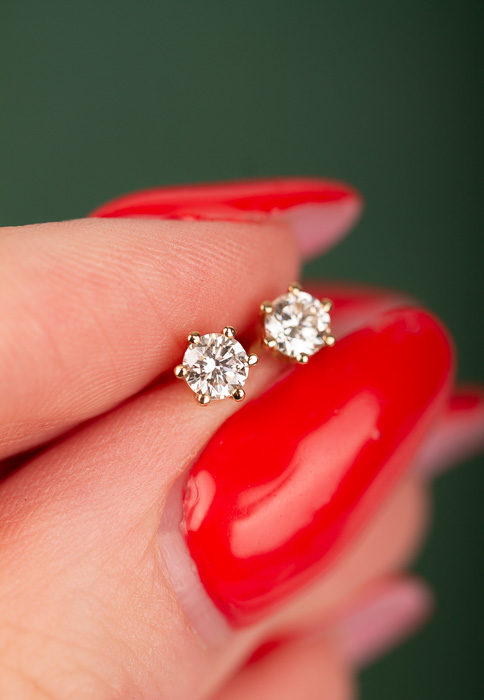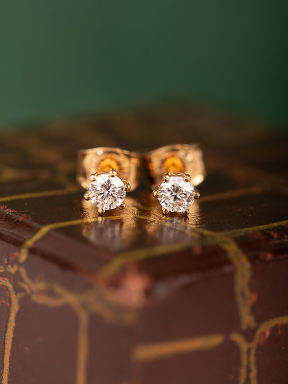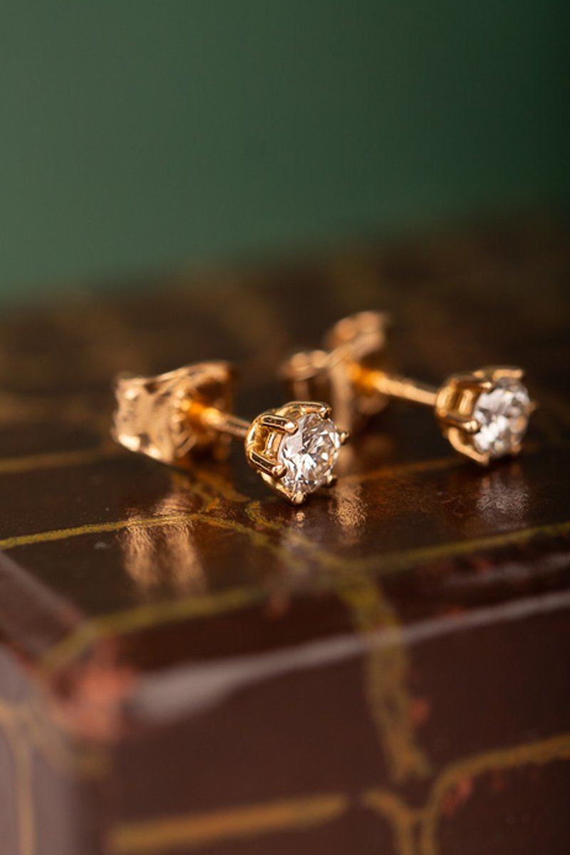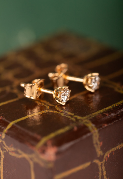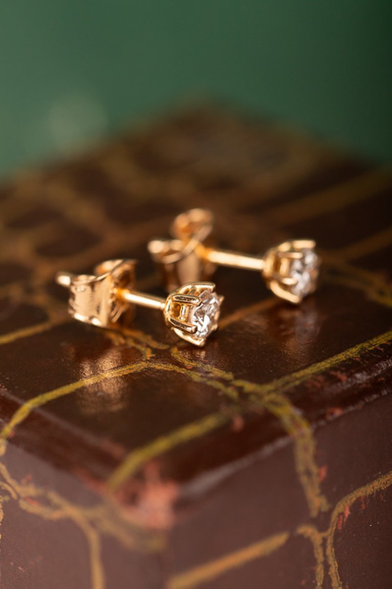 Klassiska solitärörhängen i rödguld, totalt 0,40 ct.