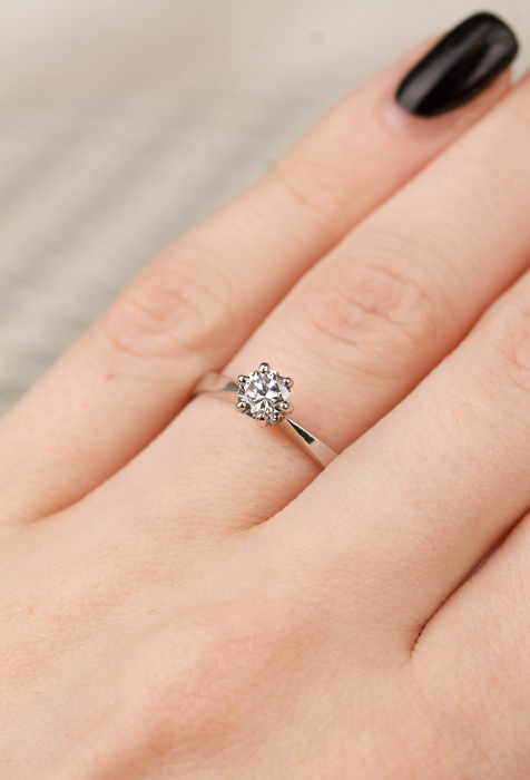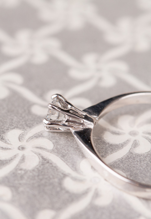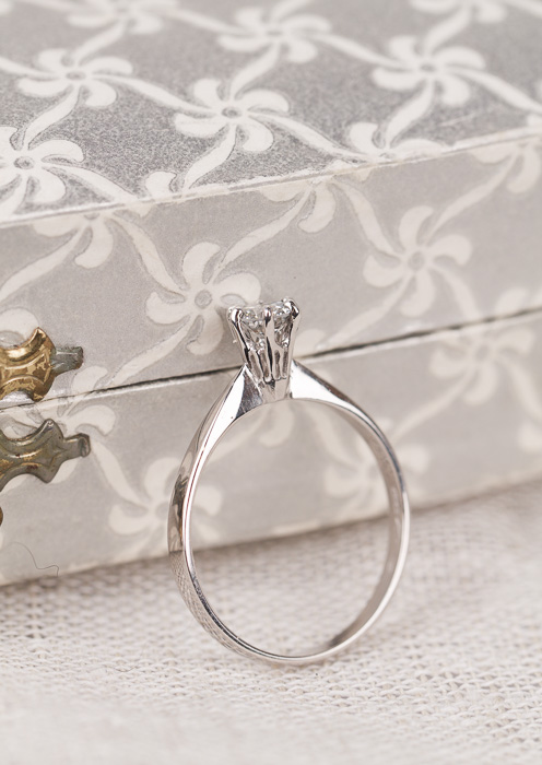 Vintage solitärring med en gnistrande diamant i centrum.