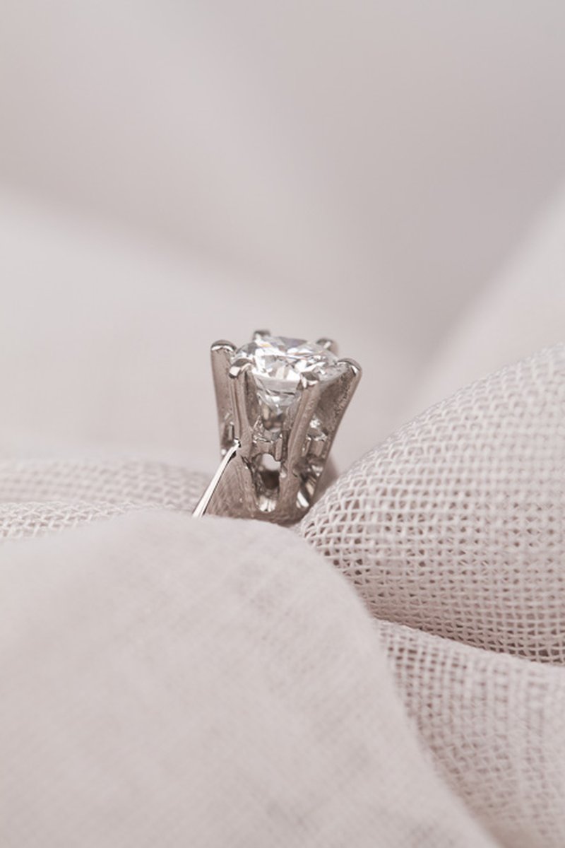 Klassisk vintage-solitärring i vitguld med en mycket sällsynt vit briljant på hela 0,59 ct. Intyg från Gemmologia ingår.