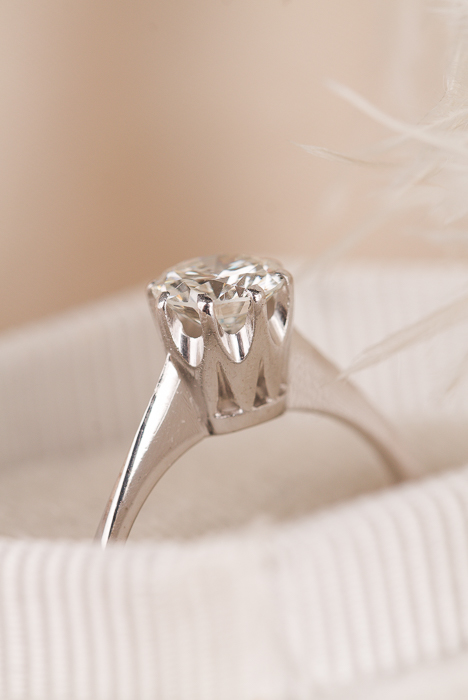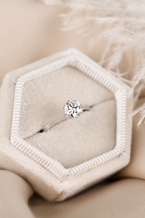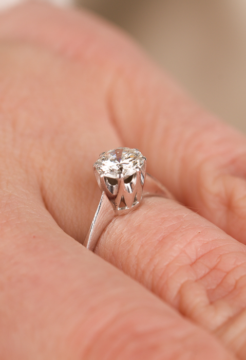 Vacker och nätt solitärring med åtta klor som håller om den krispiga diamanten i centrum.