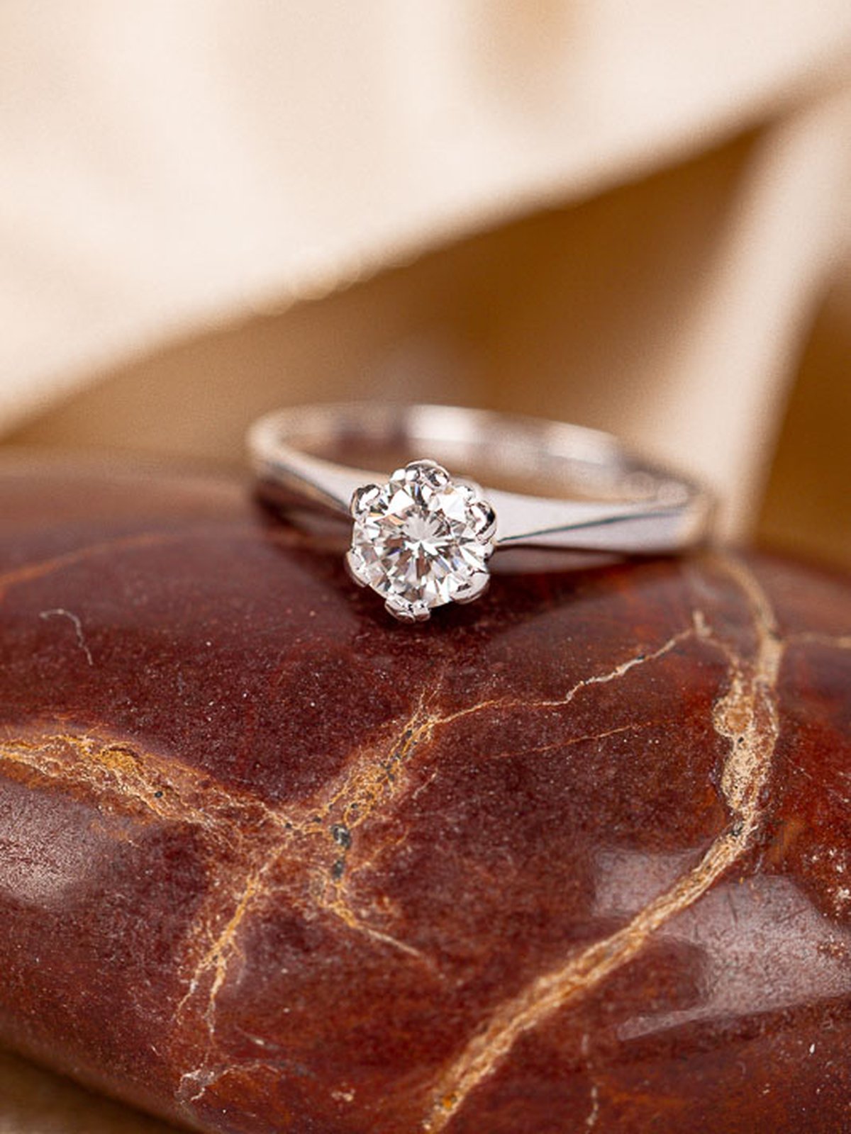 Solitärring perfekt till förlovning- eller vigsel. Går att storleksändra och gravera mot kostnadsförslag.