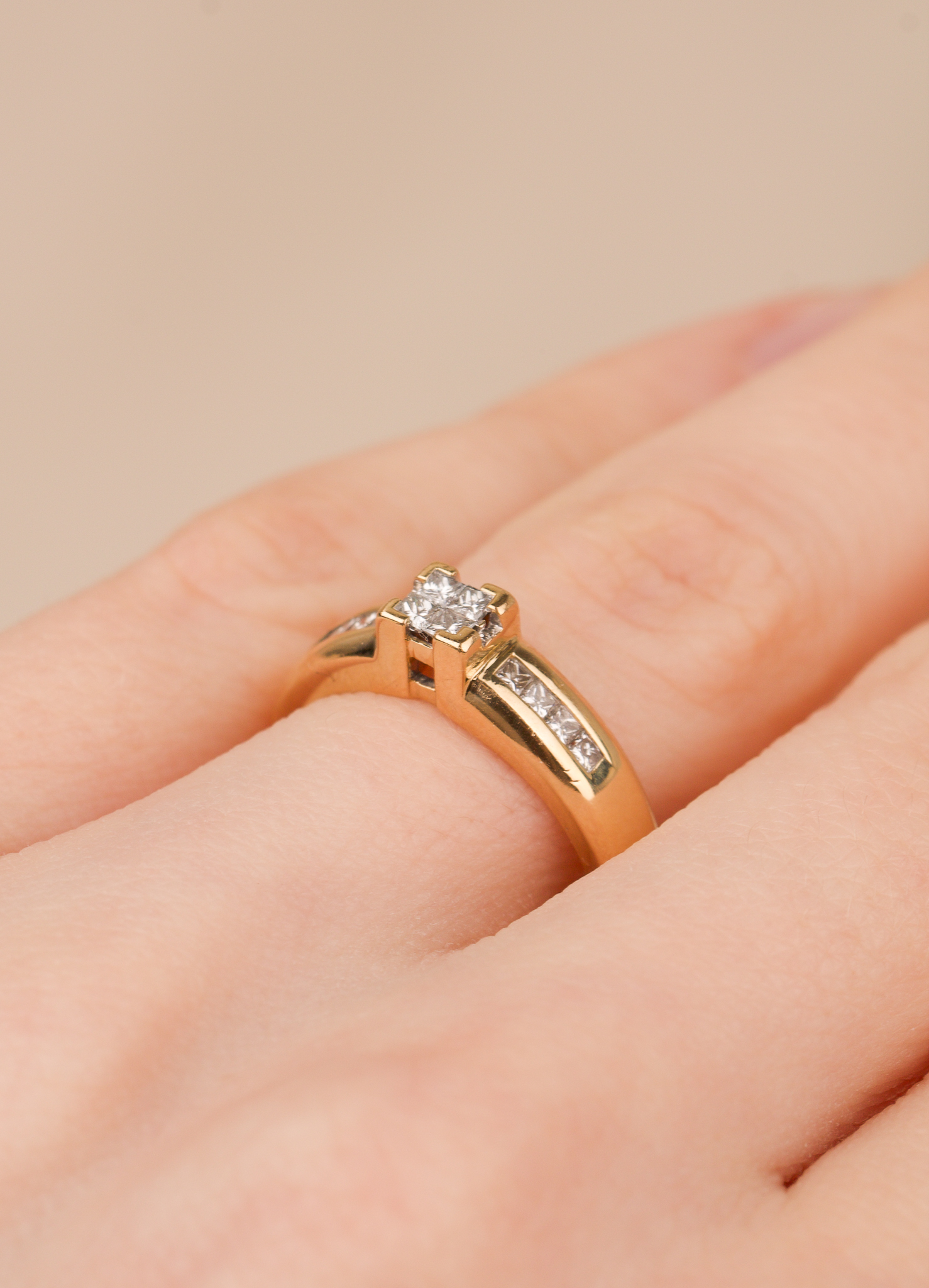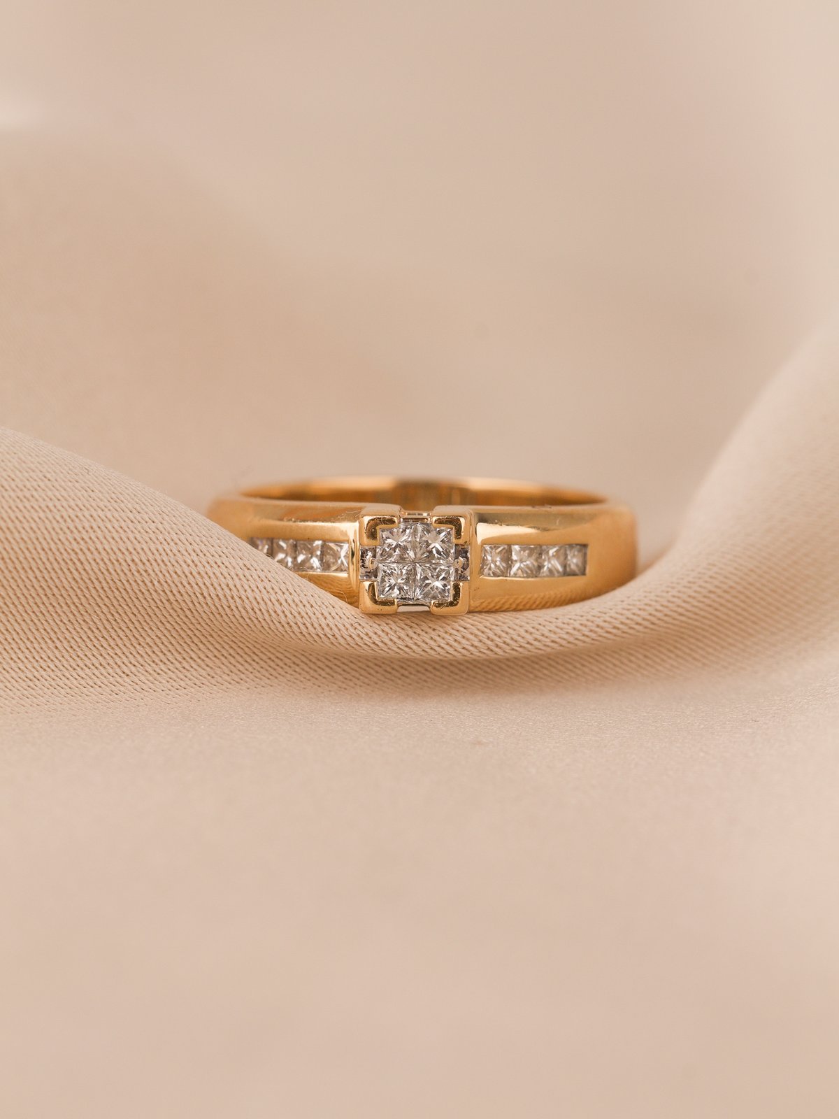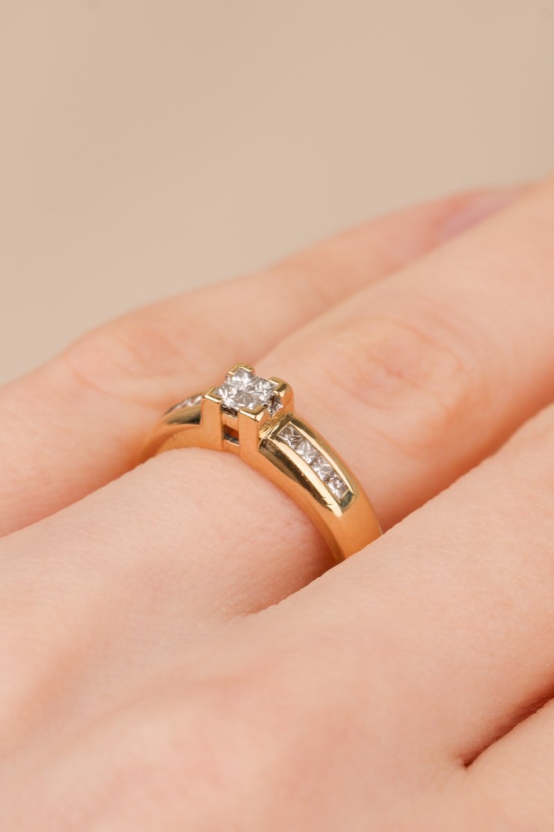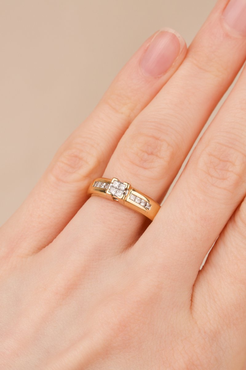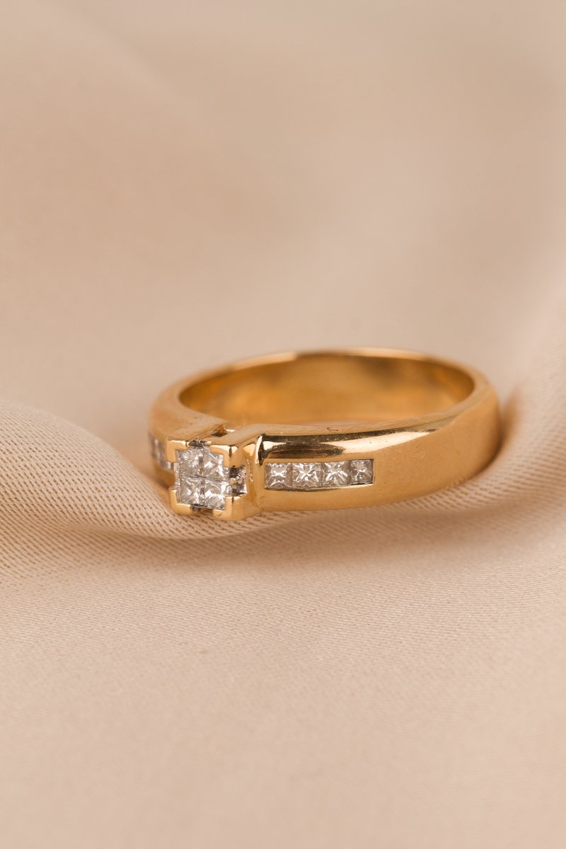 18K guld,Prinsesslipade diamanter: 4 x 0,02 + 8 x 0,01 ct