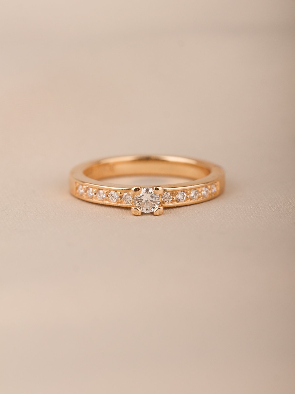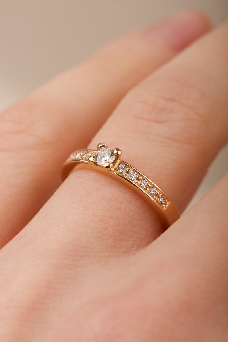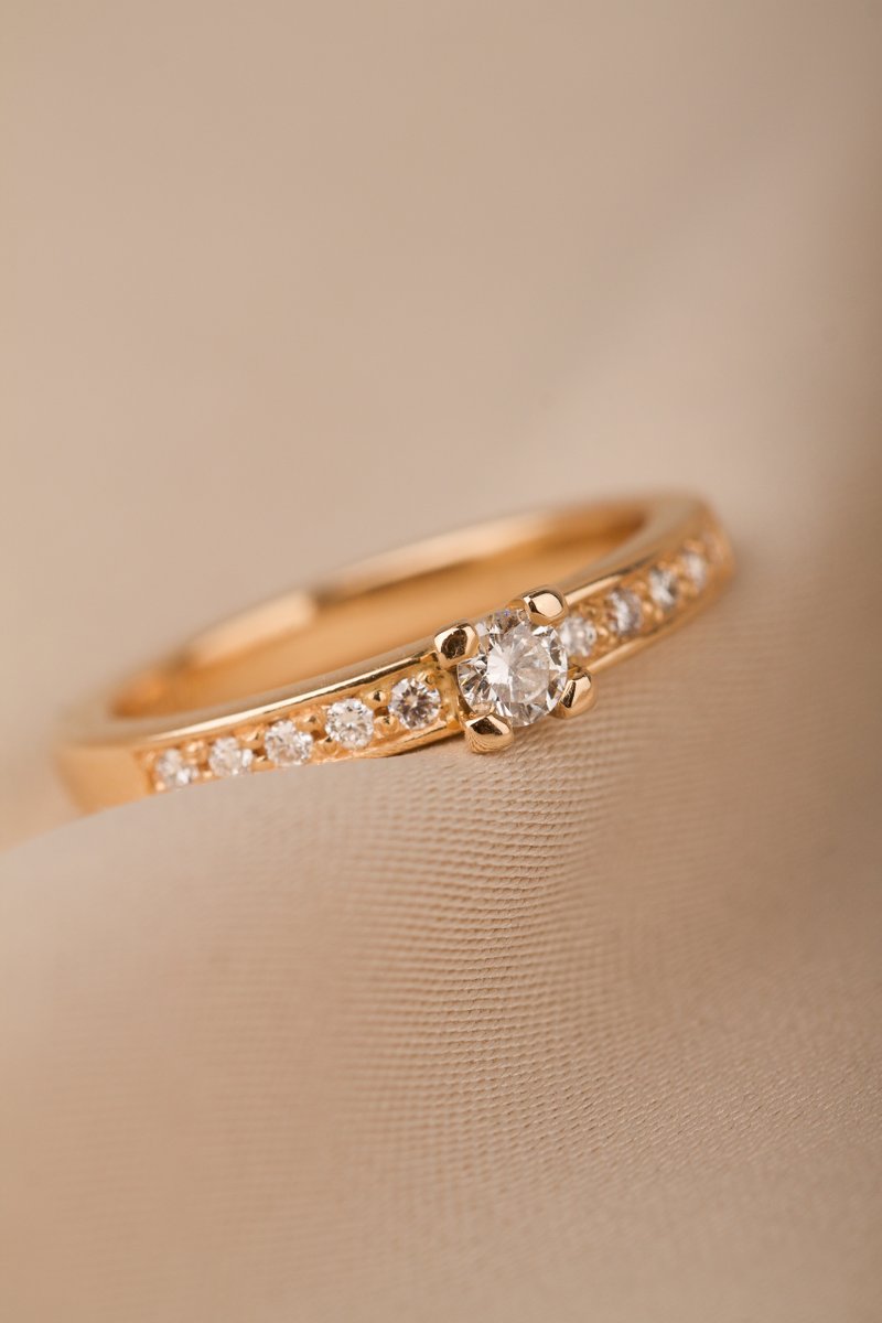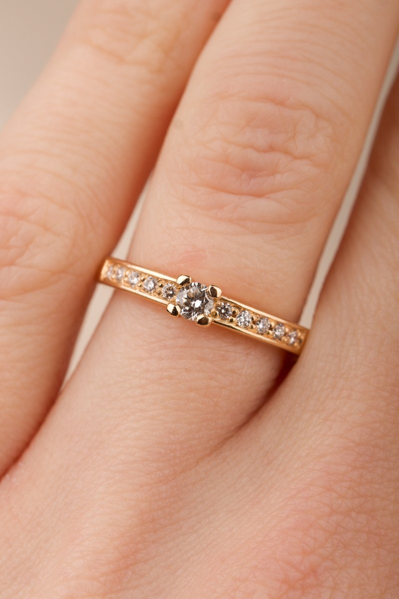 18K guld, 1 x 0,10 + 10 x 0,01 ct briljantsliapde diamanter