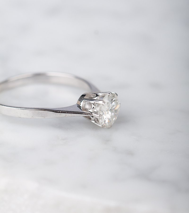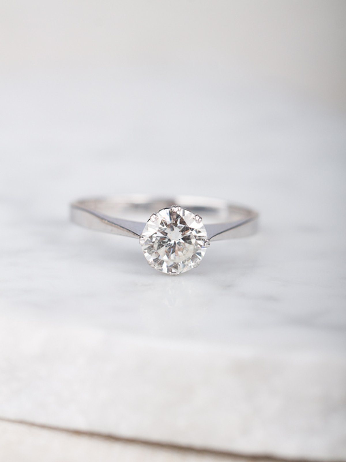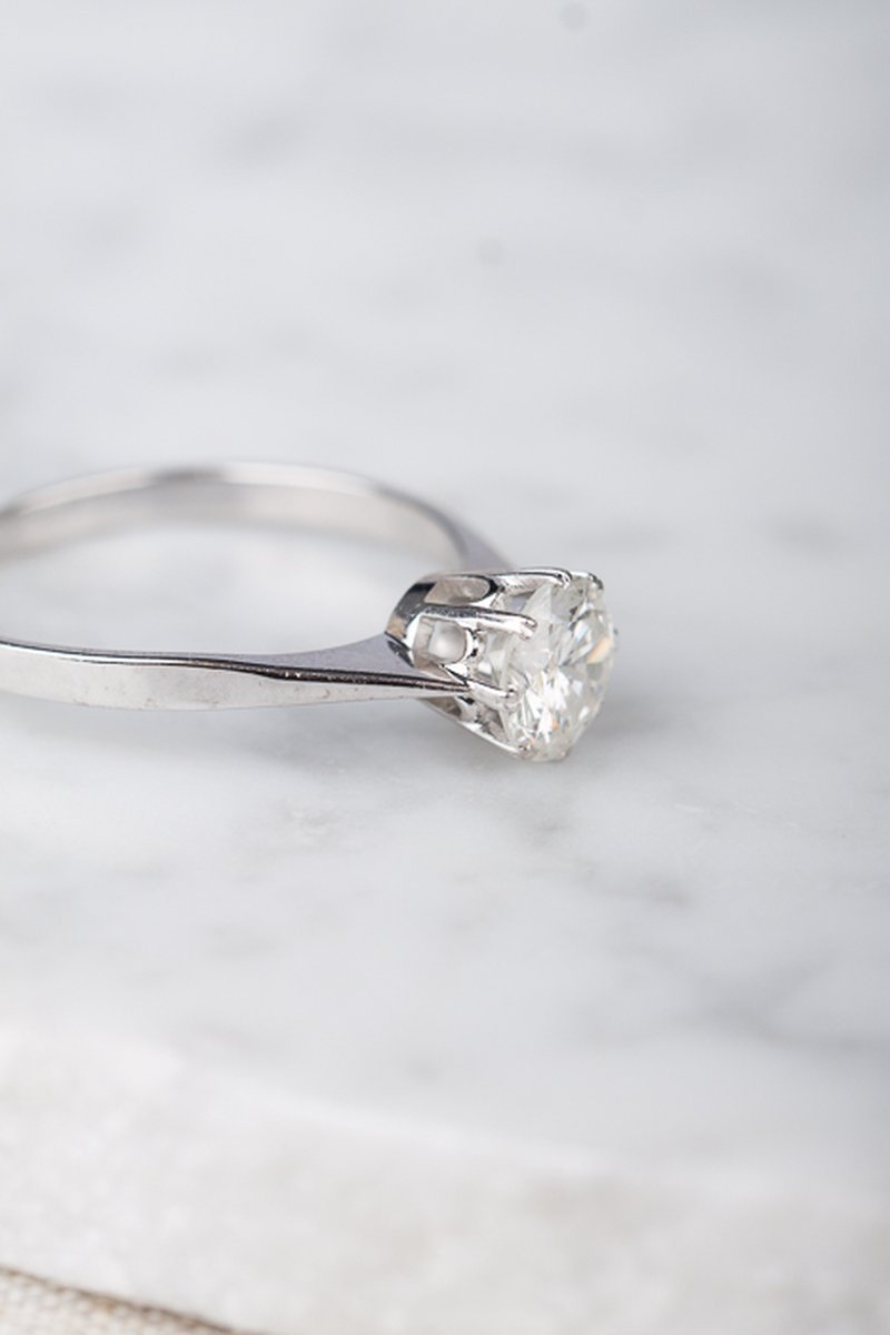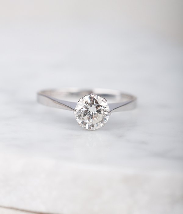 18K vitguld, briljantslipad diamant 1,13 ct. Intyg ingår.