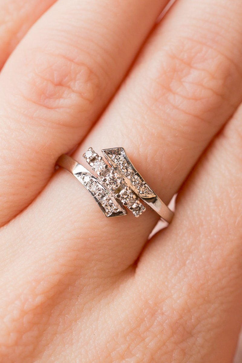 Fin vintagering med totalt 0,21 ct diamanter.