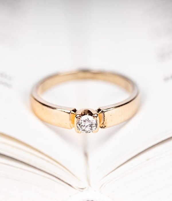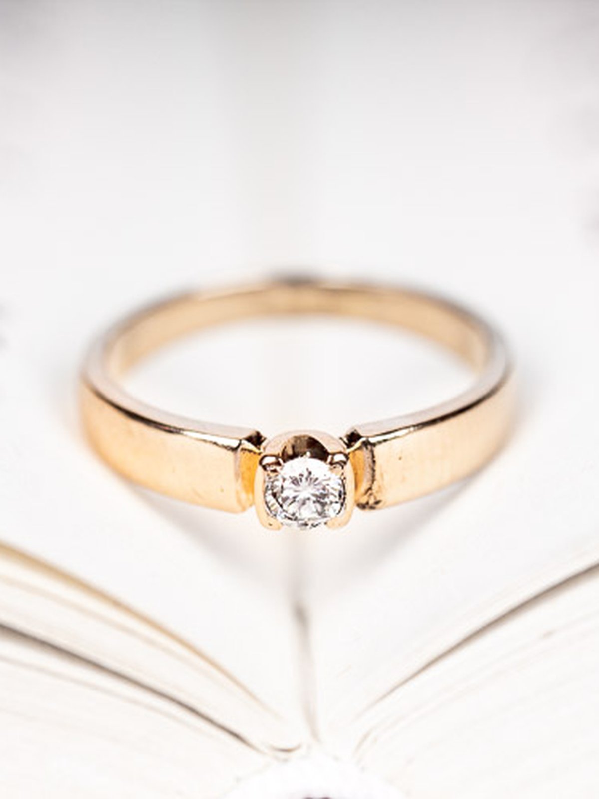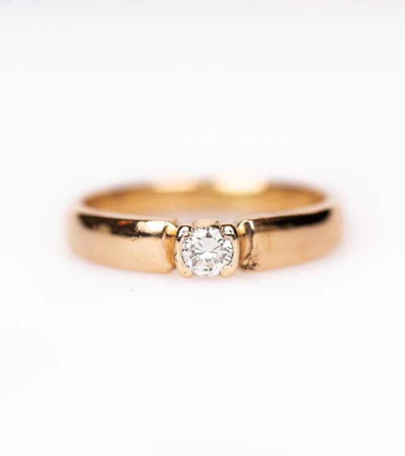 Söt solitärring i rödguld med en lågt infattad 0,14ct briljant. Perfekt som förlovningsring!