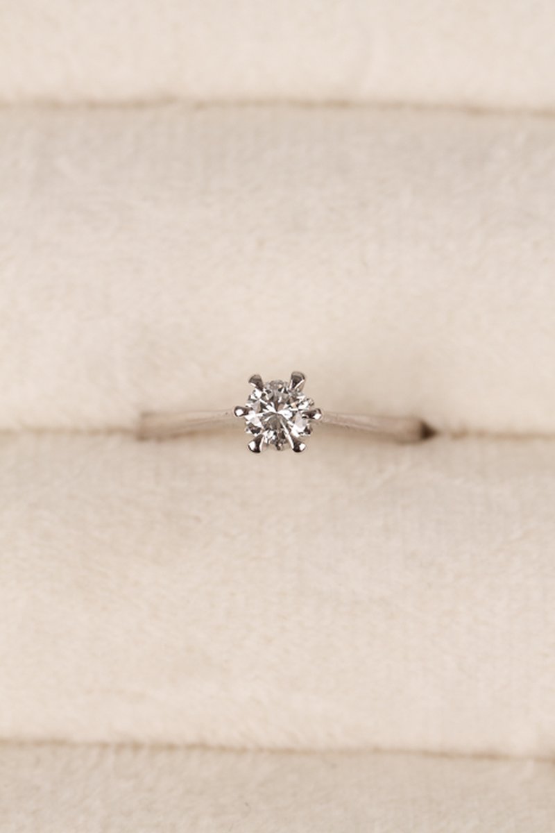 Klassisk solitärring i vitguld, går bra att ändra i storlek.
