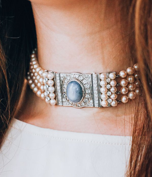 Pärlcollier förvaras bäst liggandes på en mjuk yta, dock inte av bomull. Detta torkar ur pärlorna.