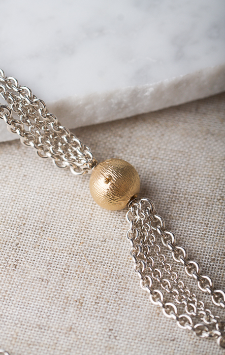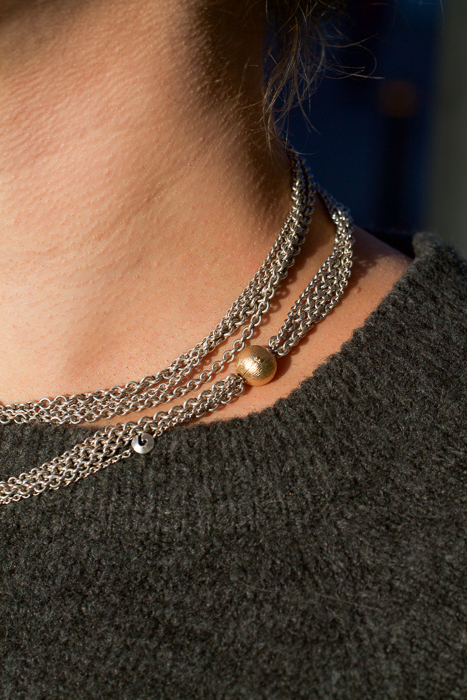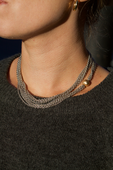 Lynggaards klassiska collier. I detta kit får du två stencollier, ett guldlås och ett fyrradigt silvercollier som kan bäras både ett eller två varv runt halsen.