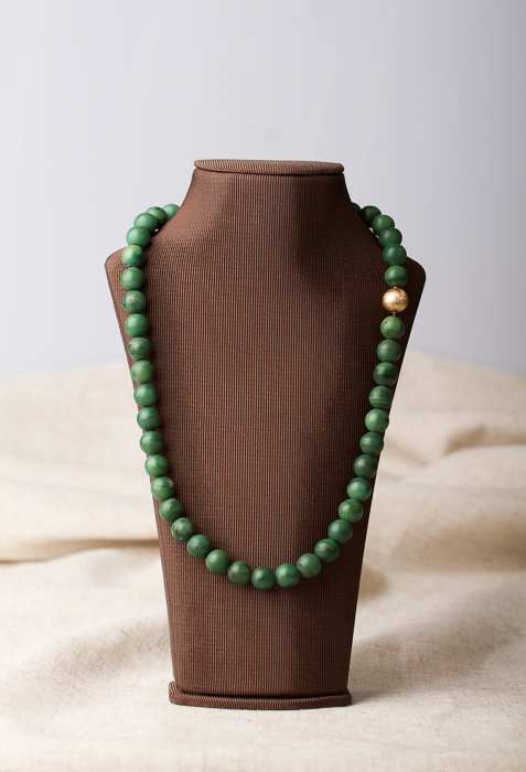18K guldlås, collier I silver, malakiter ca 10 mm, brun och svart jaspis