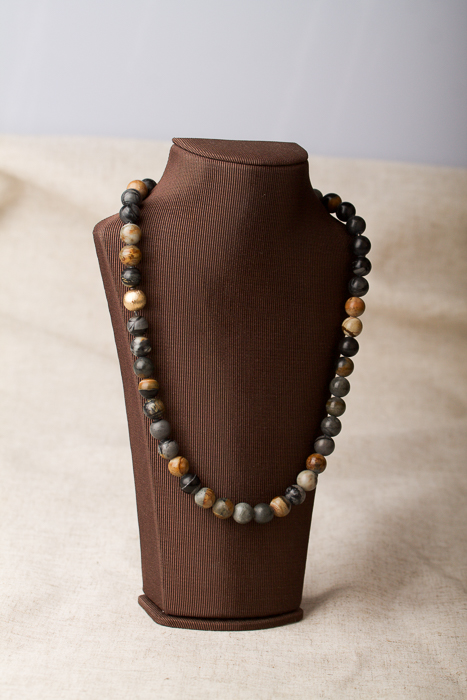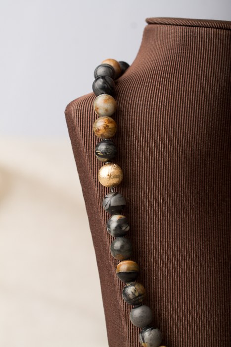 Stencollier 47 cm, silvercollier 80 cm, guldlås 10,5 mm